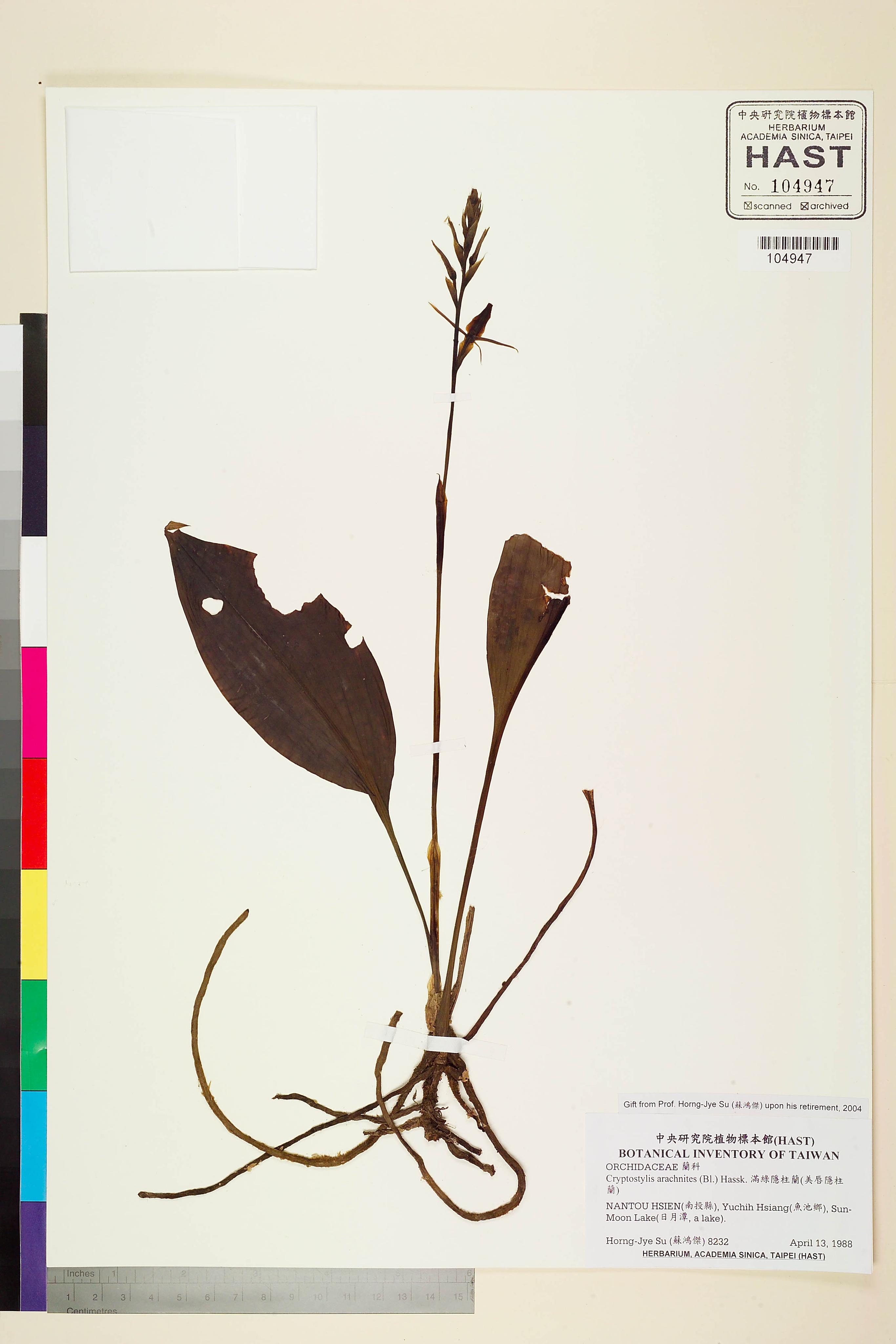 Cryptostylis arachnites (Bl.) Hassk. (滿綠隱柱蘭(美唇隱柱蘭))
