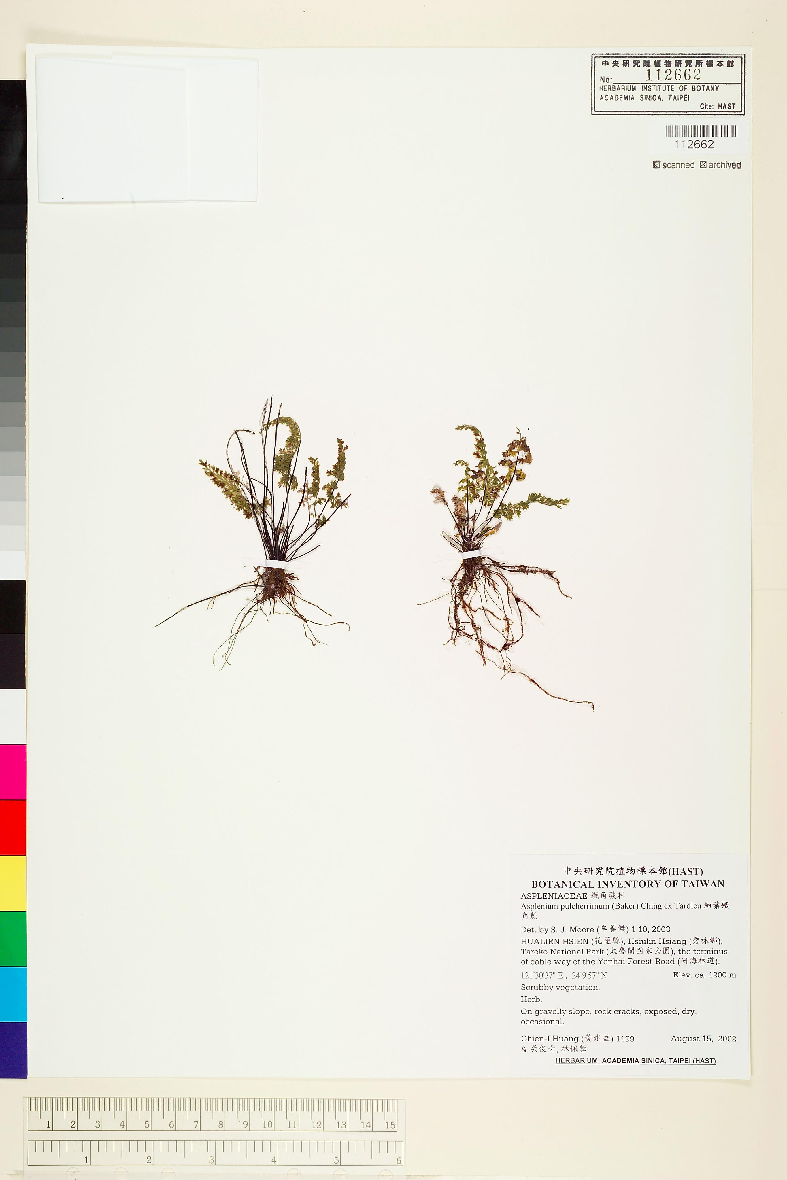 | 1 | Asplenium pulcherrimum (Baker) Ching ex Tardieu | 細葉鐵角蕨 | Moore, S. J. (牟善傑) | 2003-01-10 |