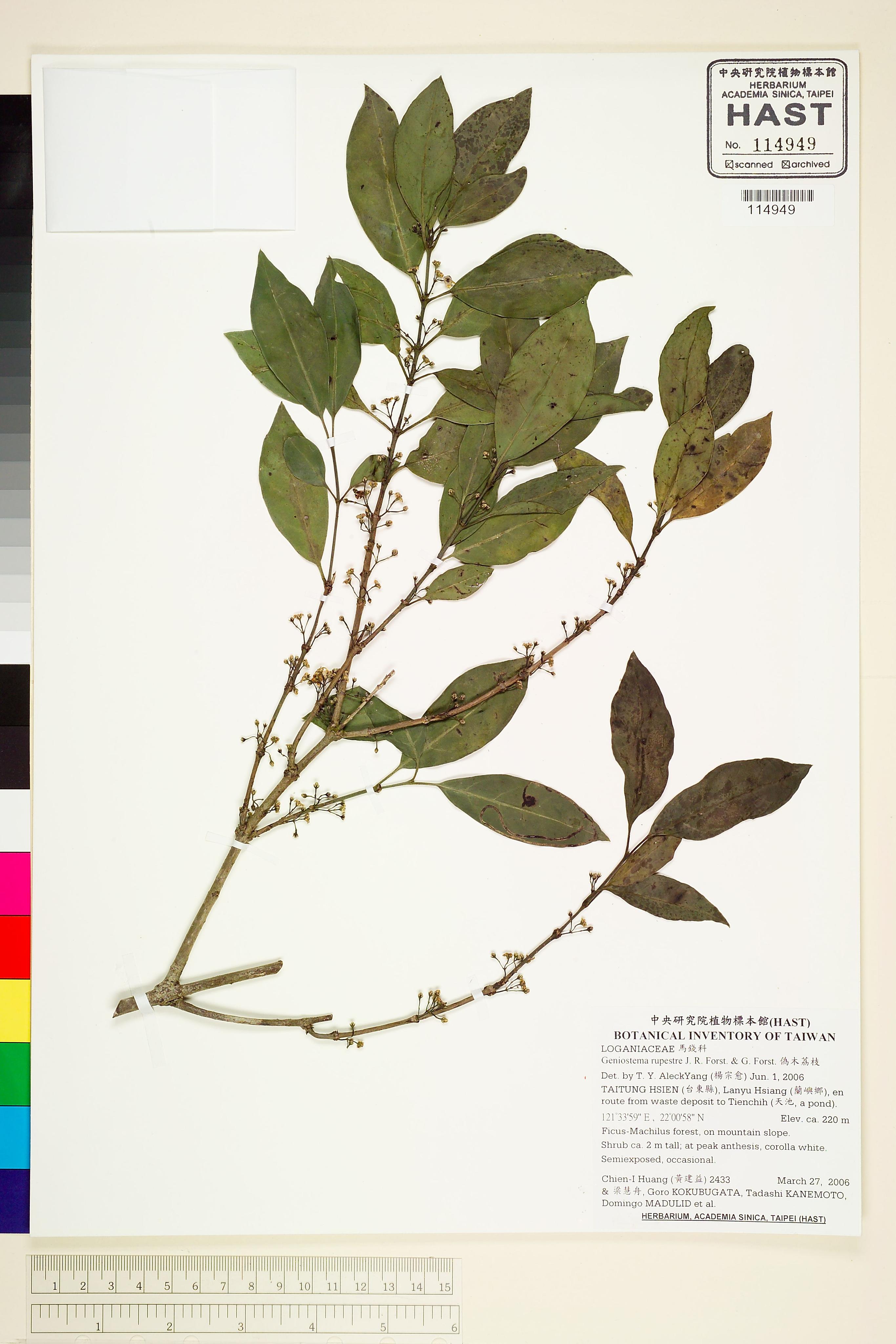 | 1 | Geniostoma rupestre J. R. Forst. & G. Forst. | 偽木荔枝 | Yang, T. Y. Aleck (楊宗愈) | 2006-06-01 |