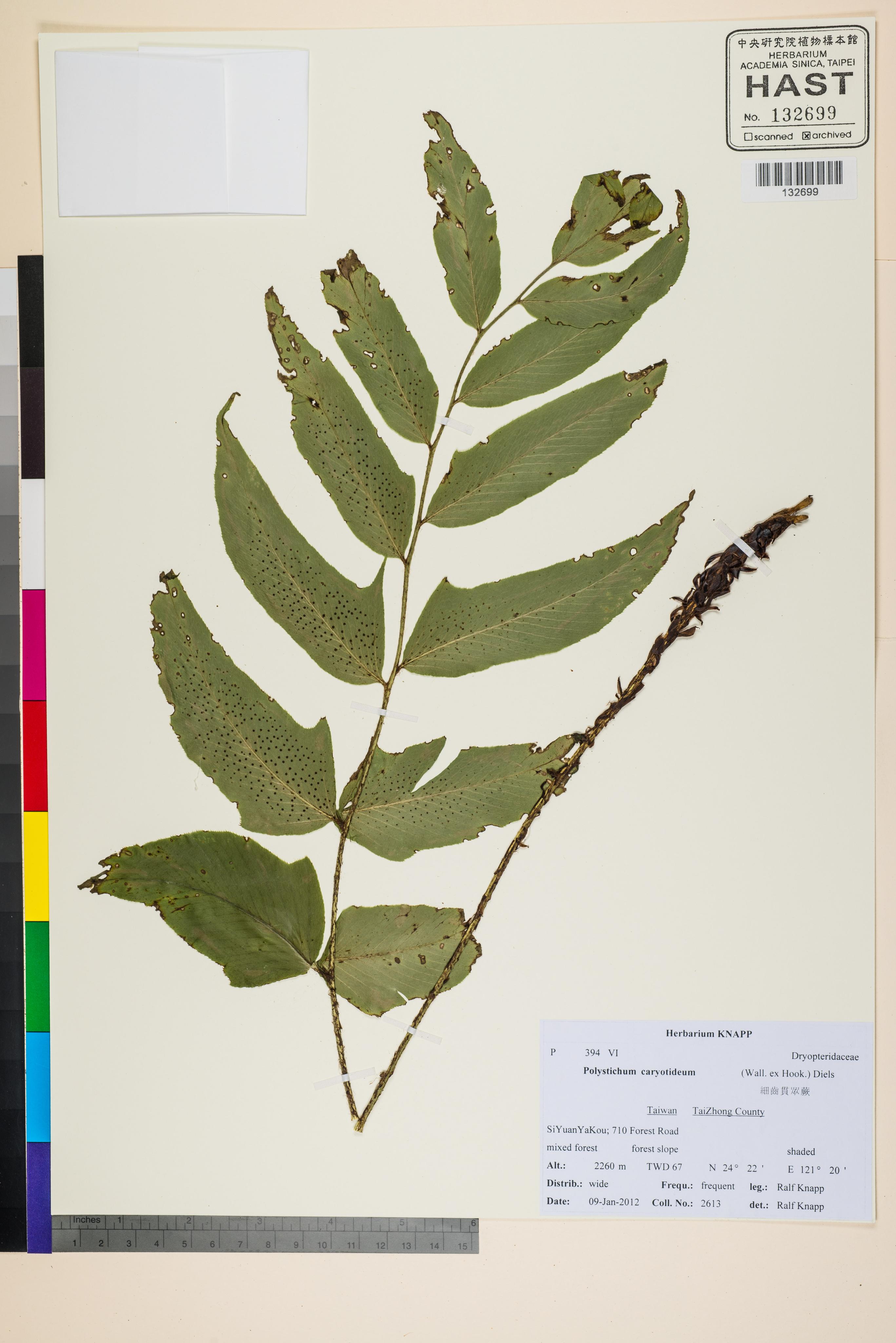 Polystichum caryotideum (Wall. ex Hook. & Grev.) Diels (細齒貫眾蕨)