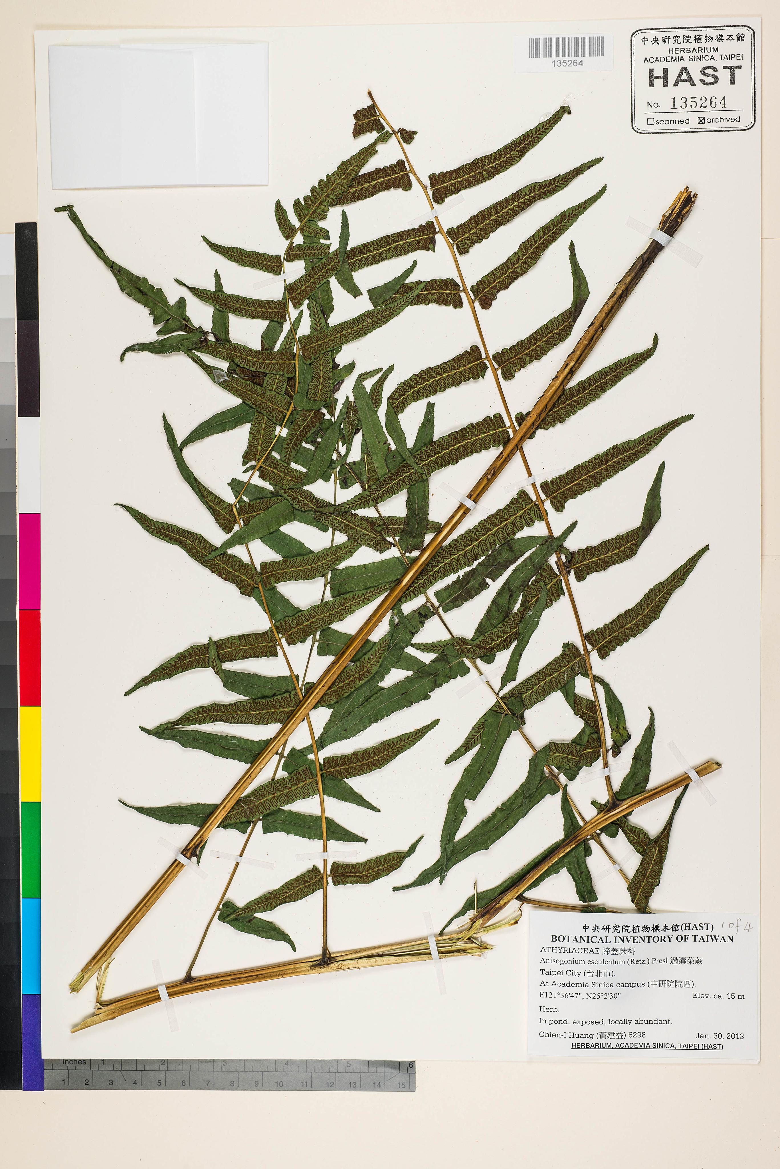| 1 | Diplazium esculentum (Retz.) Sw. | 過溝菜蕨 | Huang, Chien-I (黃建益) | 2013-07-26 |