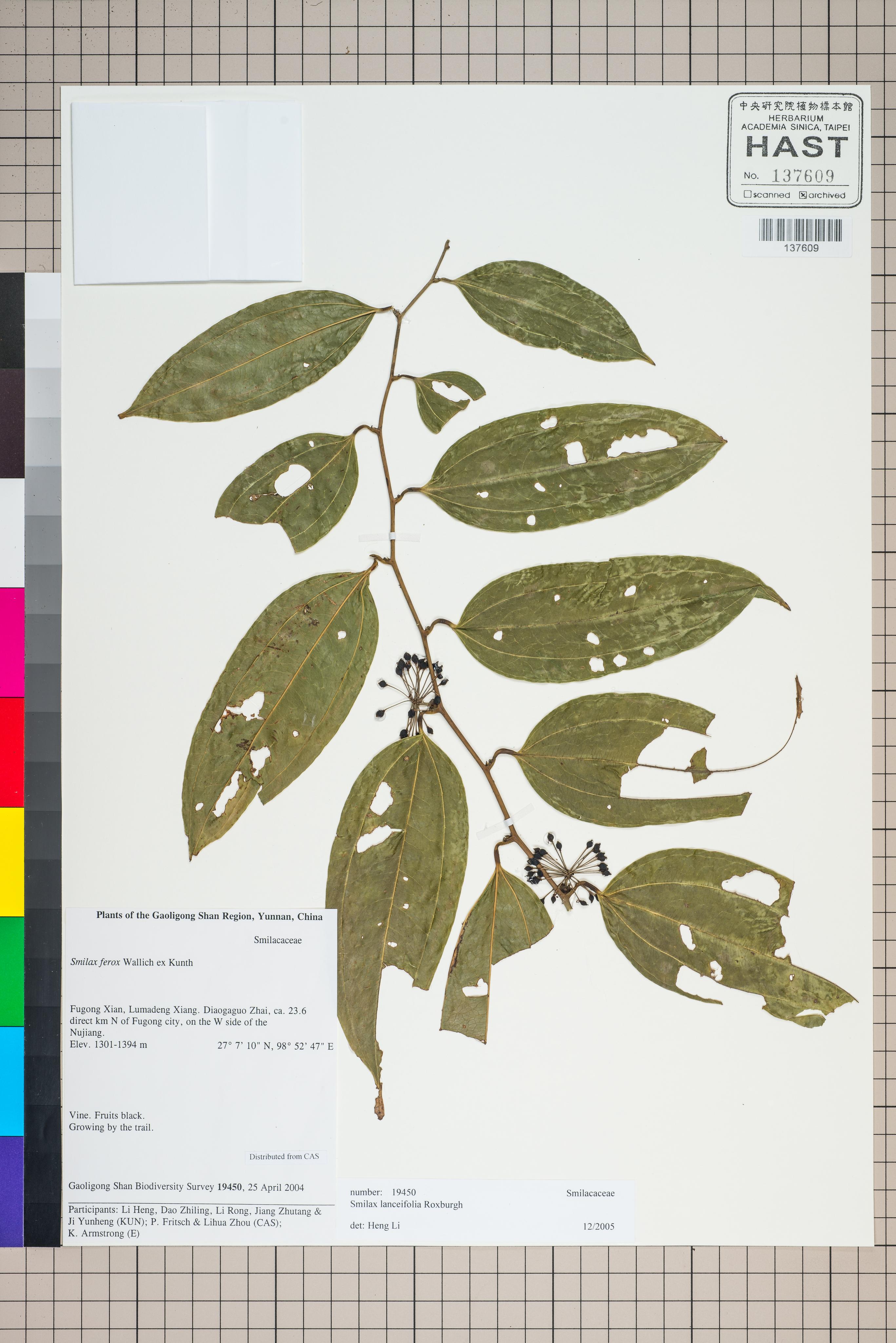 | 1 | Smilax lanceifolia Roxb. | 台灣土茯苓(馬甲菝葜) | Li, Heng (李恒) |