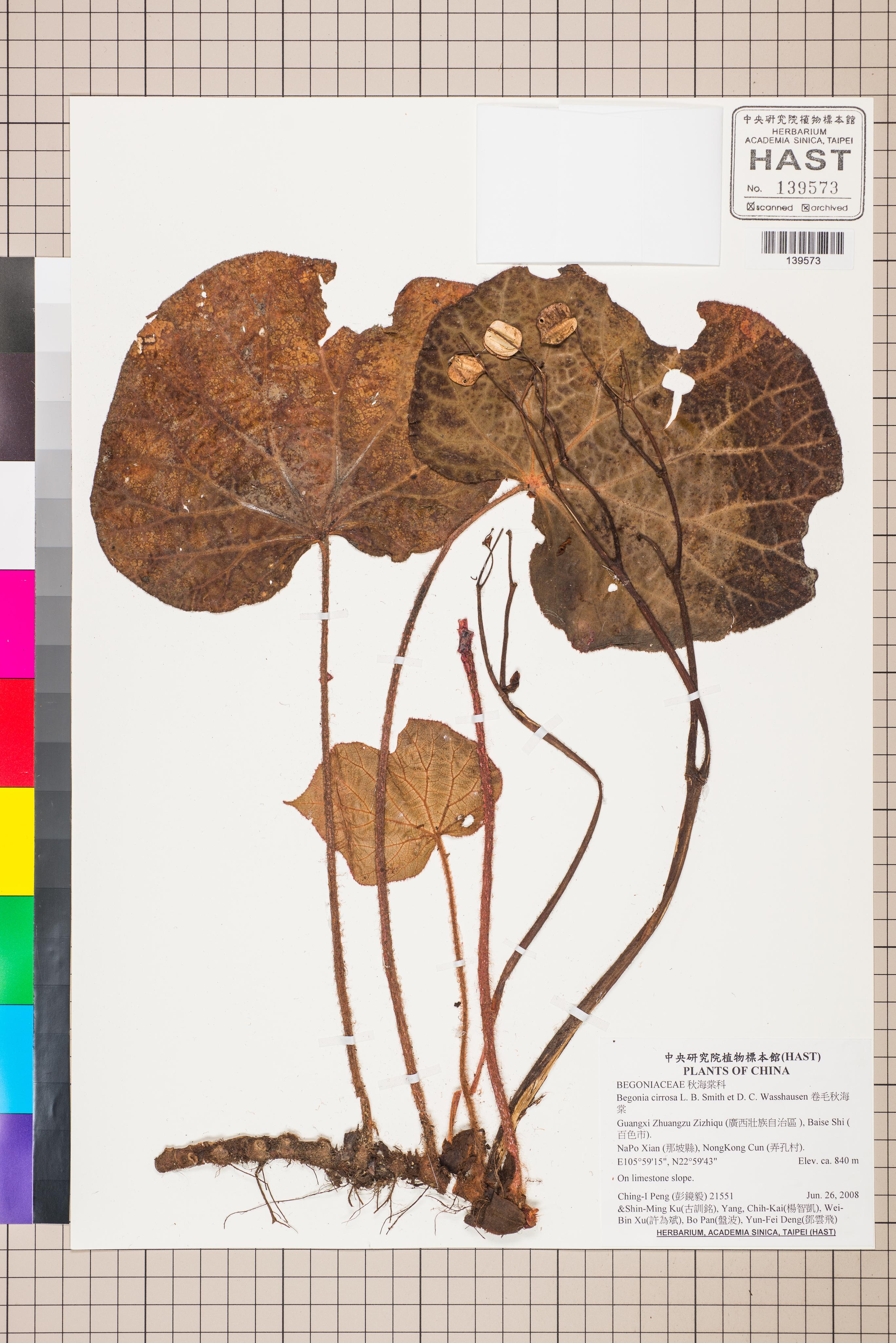 Begonia cirrosa L.B.Sm. & Wassh. (卷毛秋海棠)