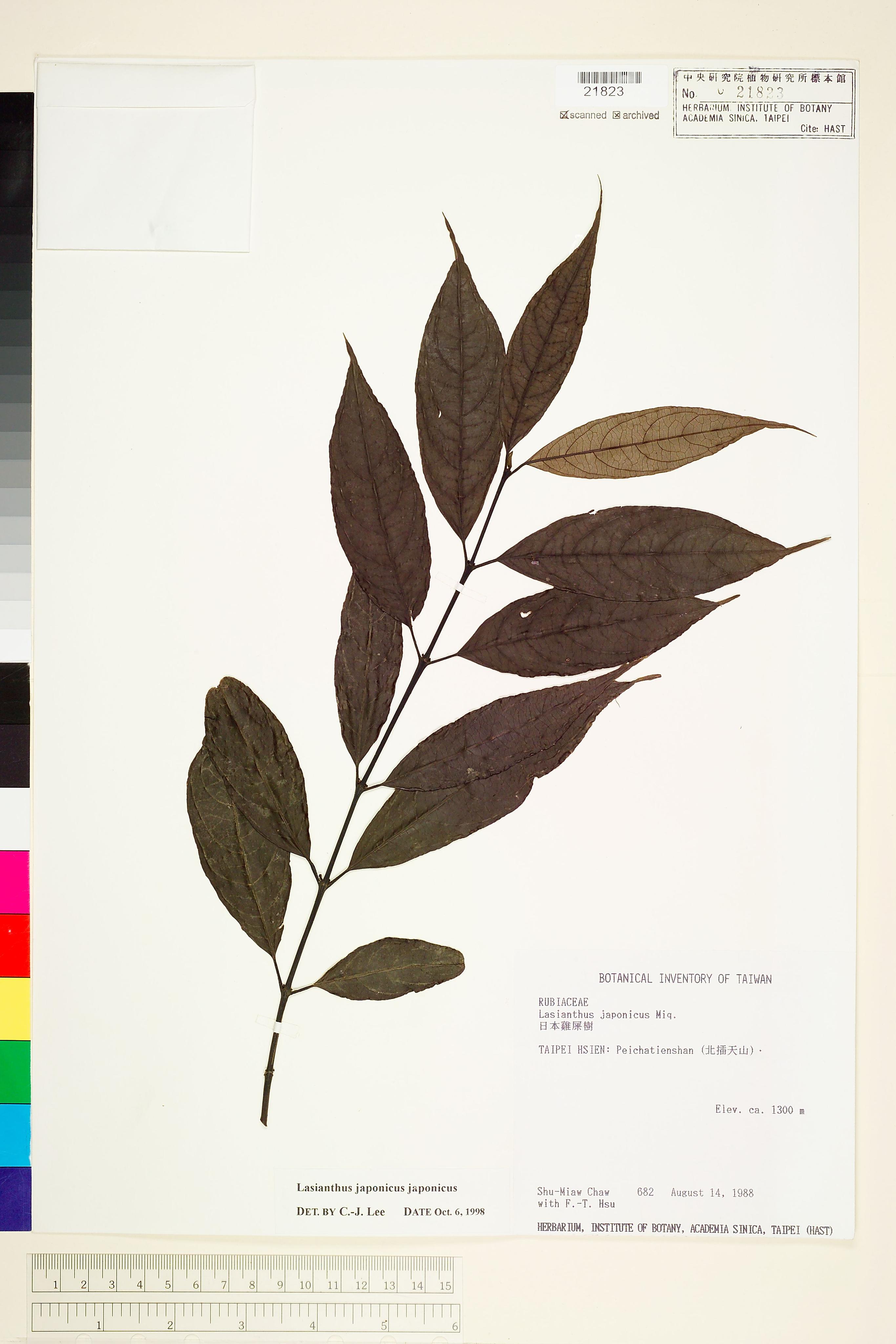 | 1 | Lasianthus japonicus Miq. var. japonicus | 日本雞屎樹 | Lee, Chen-Jung (李珍容) | 1998-10-06 |