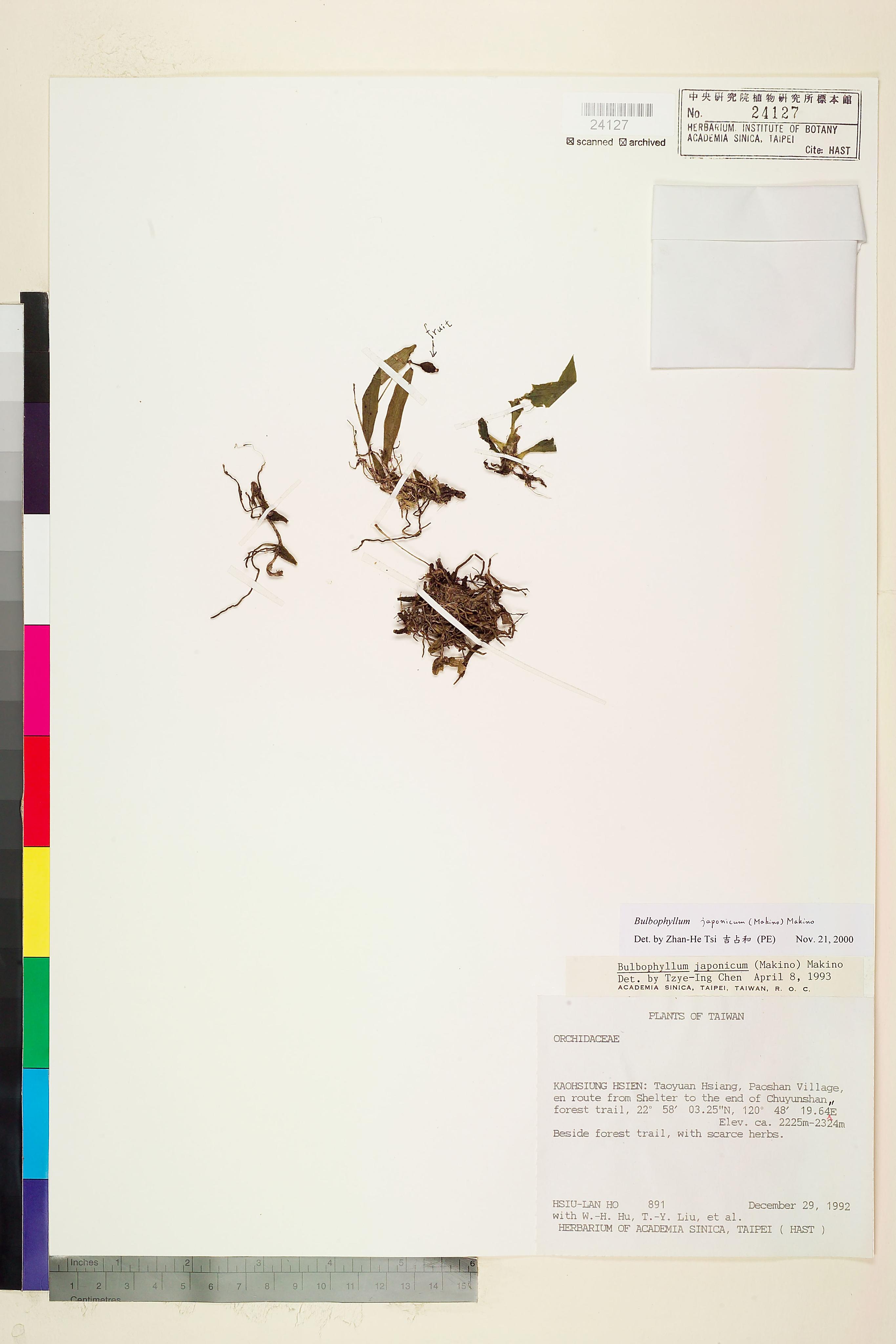 | 1 | Bulbophyllum japonicum (Makino) Makino | 日本捲瓣蘭 | Tsi, Zhan-He (吉占和) | 2000-11-21 |