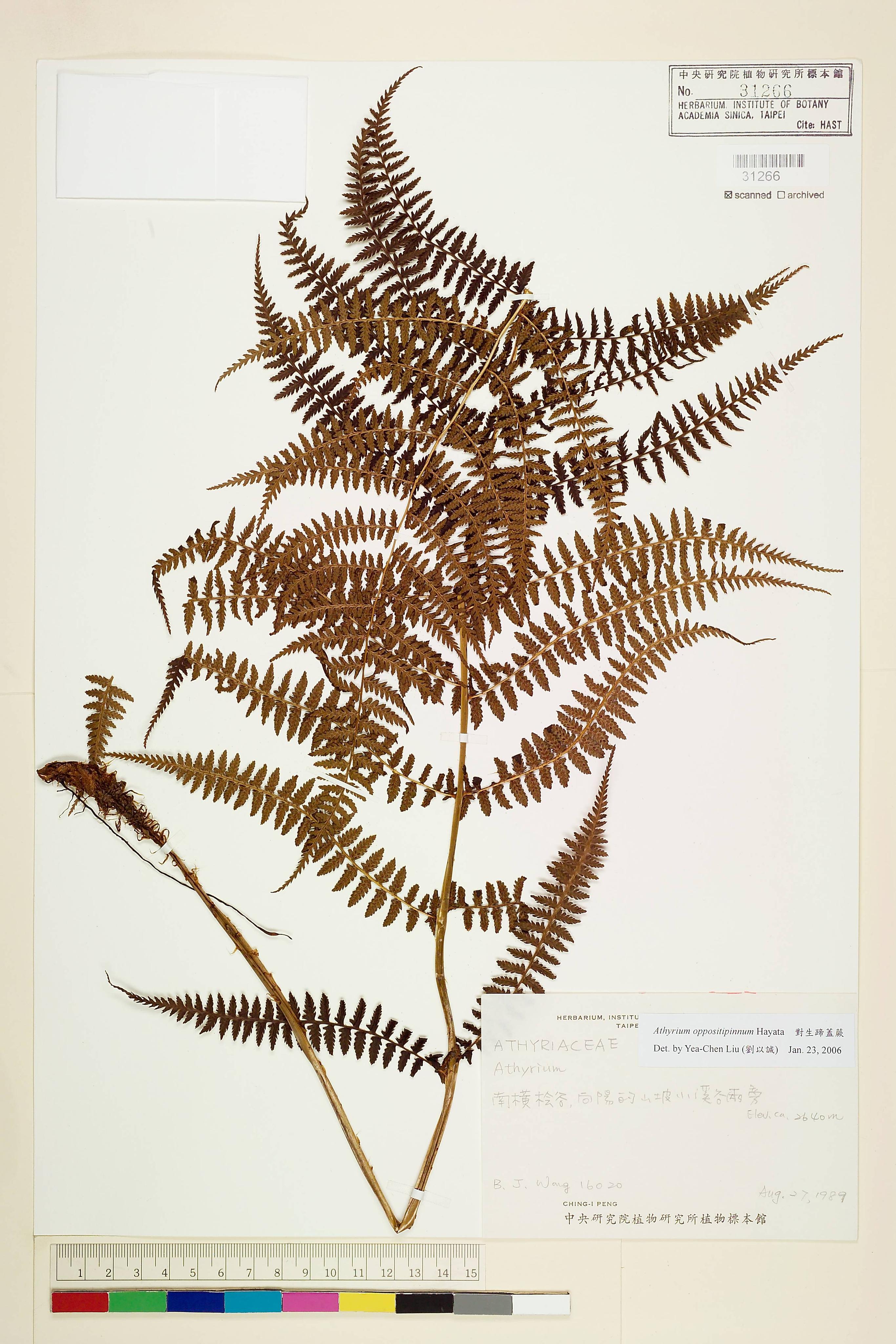 | 1 | Athyrium oppositipinnum Hayata | 對生蹄蓋蕨 | Liu, Yea-Chen (劉以誠) | 2006-01-23 |