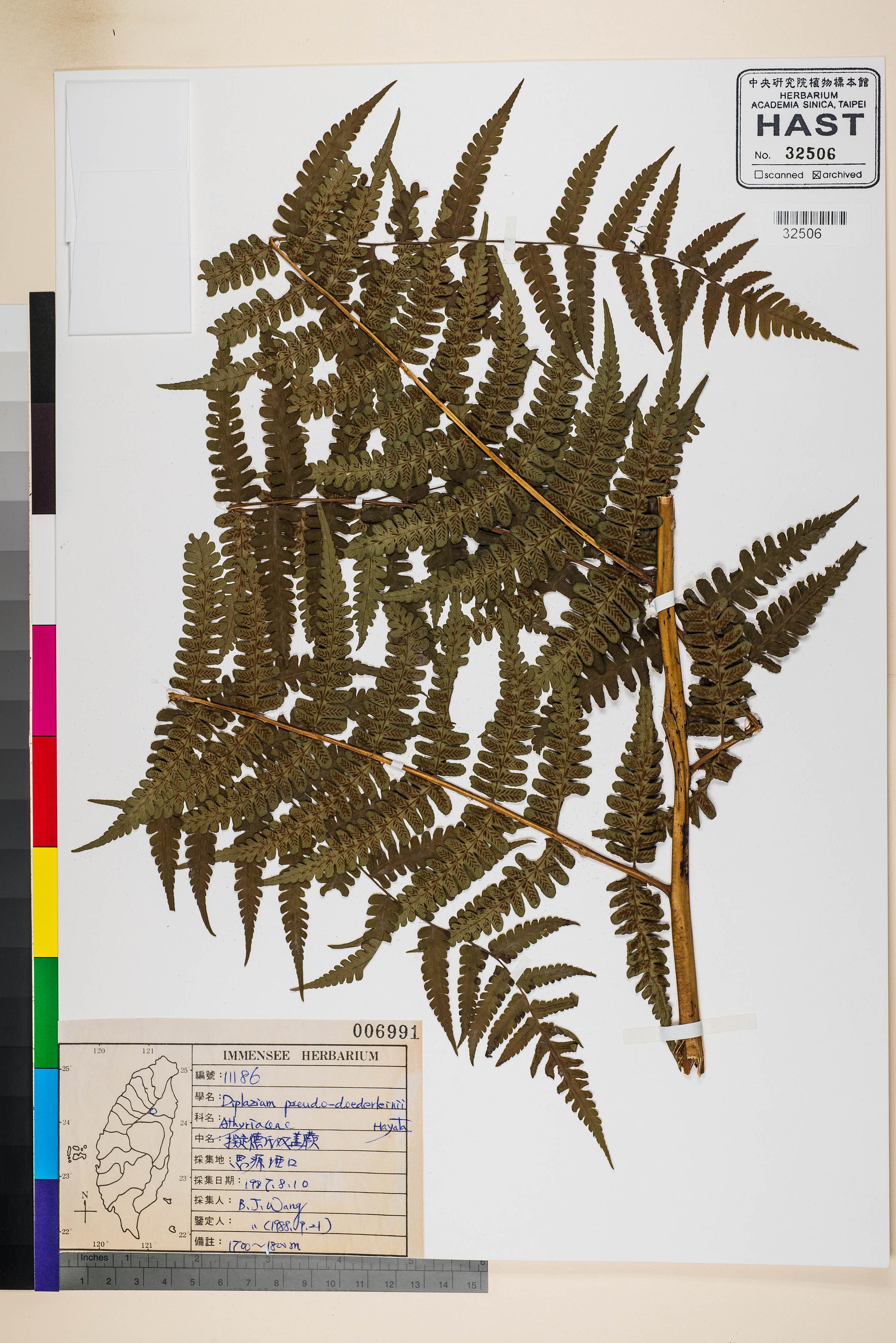 | 1 | Diplazium pseudo-doederleinii Hayata | 擬德氏雙蓋蕨 | Wang, Bi-Jao (王弼昭) | 1988-09-21 |