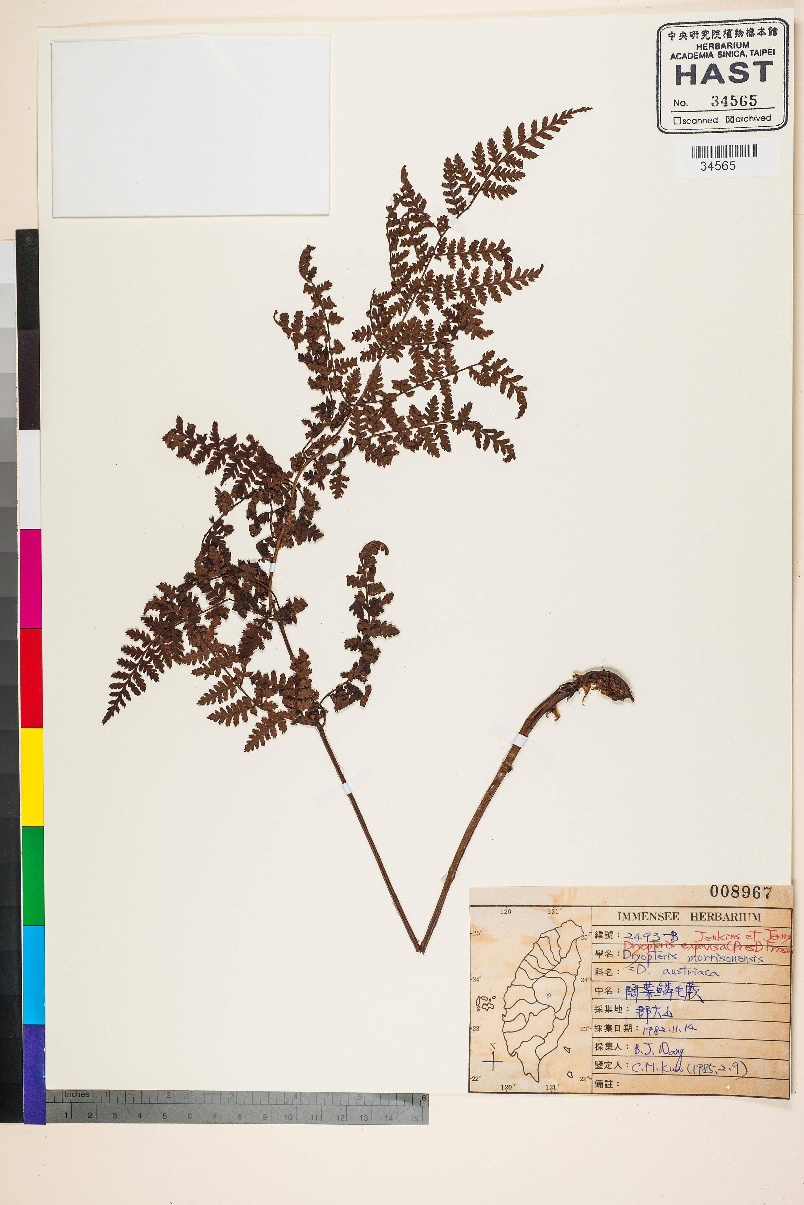 | 1 | Dryopteris austriaca (Jacq.) Wayn. ex Schinz & Thell. | 闊葉鱗毛蕨 | Kuo, Chen-Meng (郭城孟) | 1985-02-09 |