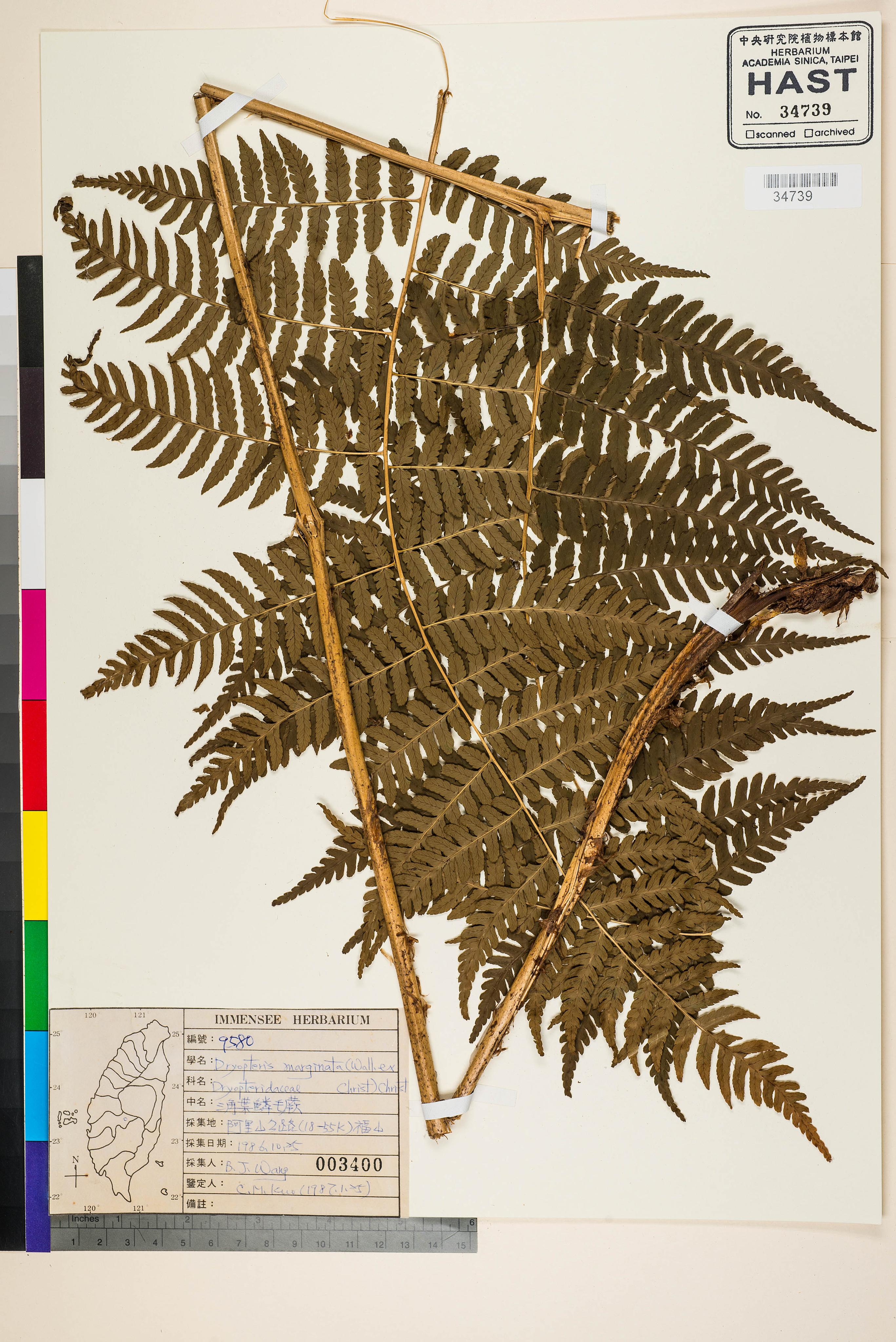 | 1 | Dryopteris marginata (Wall.) H. Christ | 三角葉鱗毛蕨 | Kuo, Chen-Meng (郭城孟) | 1987-01-25 |