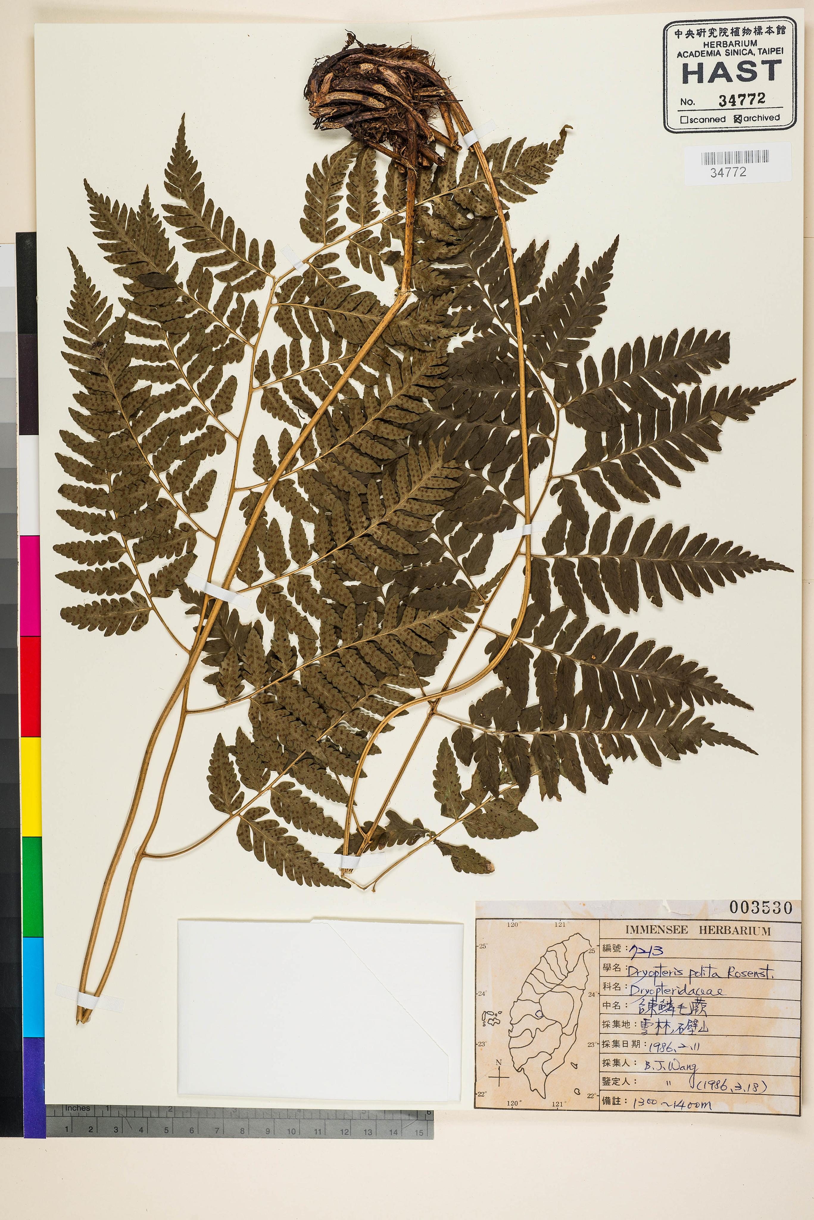 | 1 | Dryopteris polita Rosenst. | 台東鱗毛蕨 | Wang, Bi-Jao (王弼昭) | 1986-03-18 |
