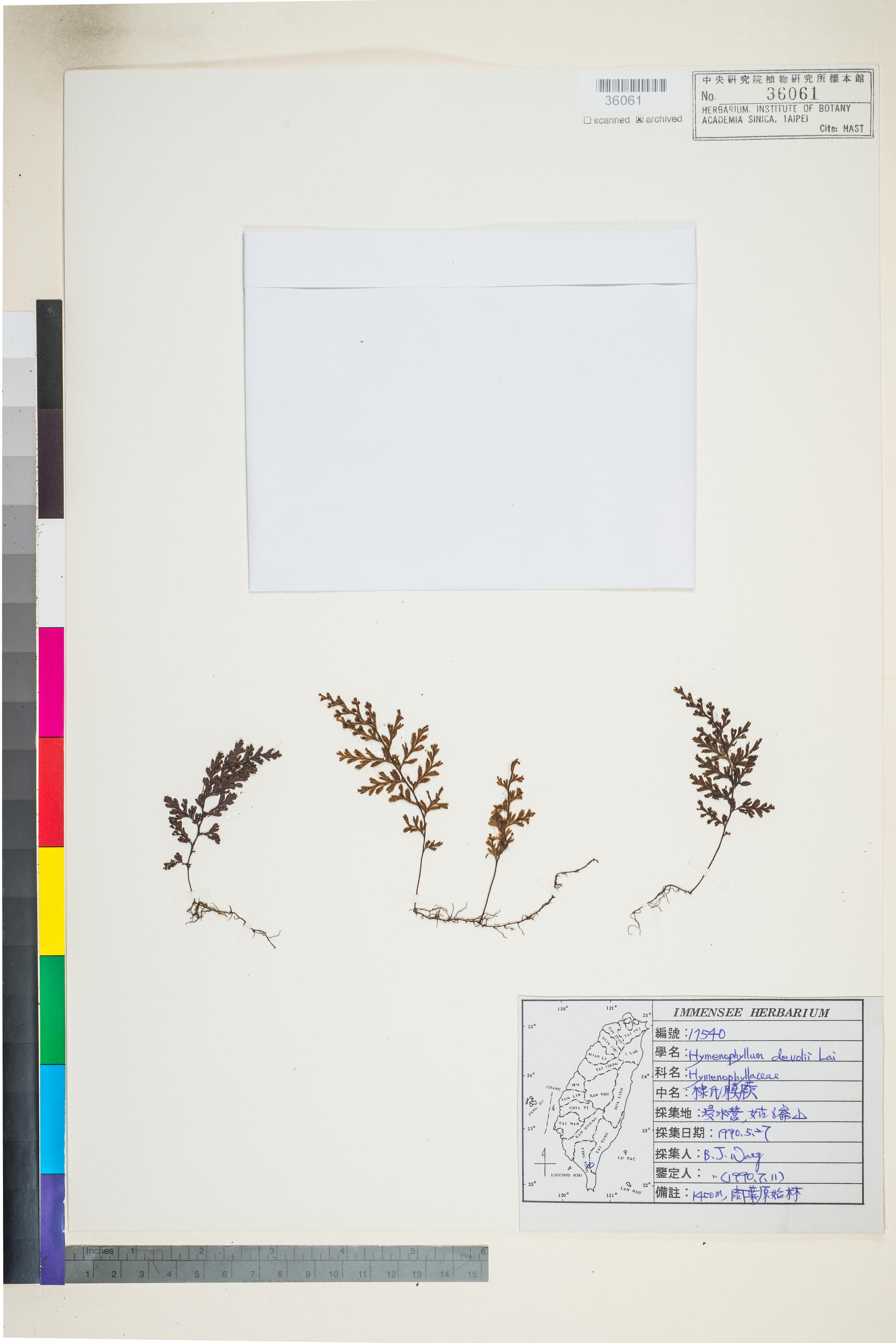 Hymenophyllum devolii Lai
