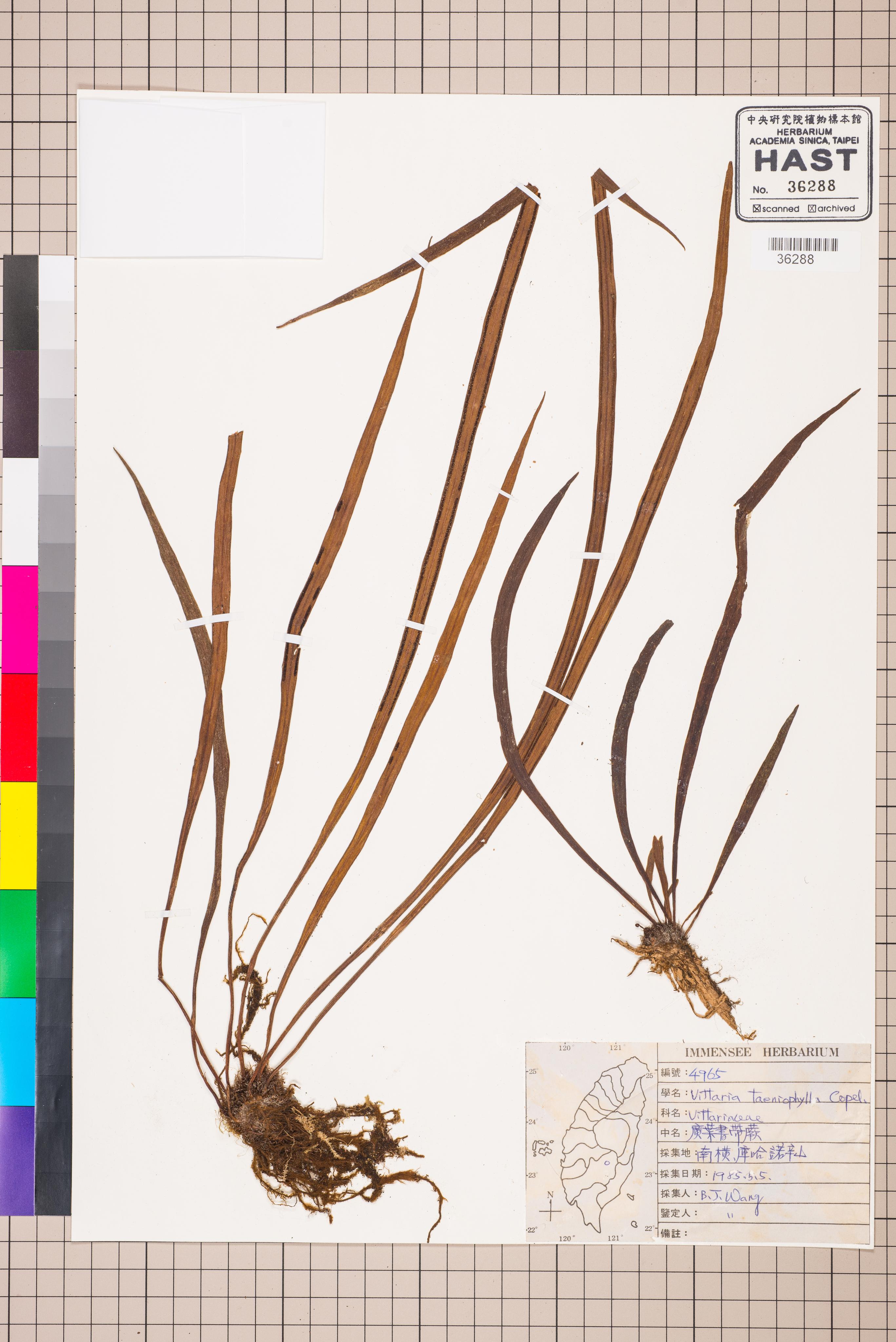Vittaria taeniophylla Copel. (廣葉書帶蕨)