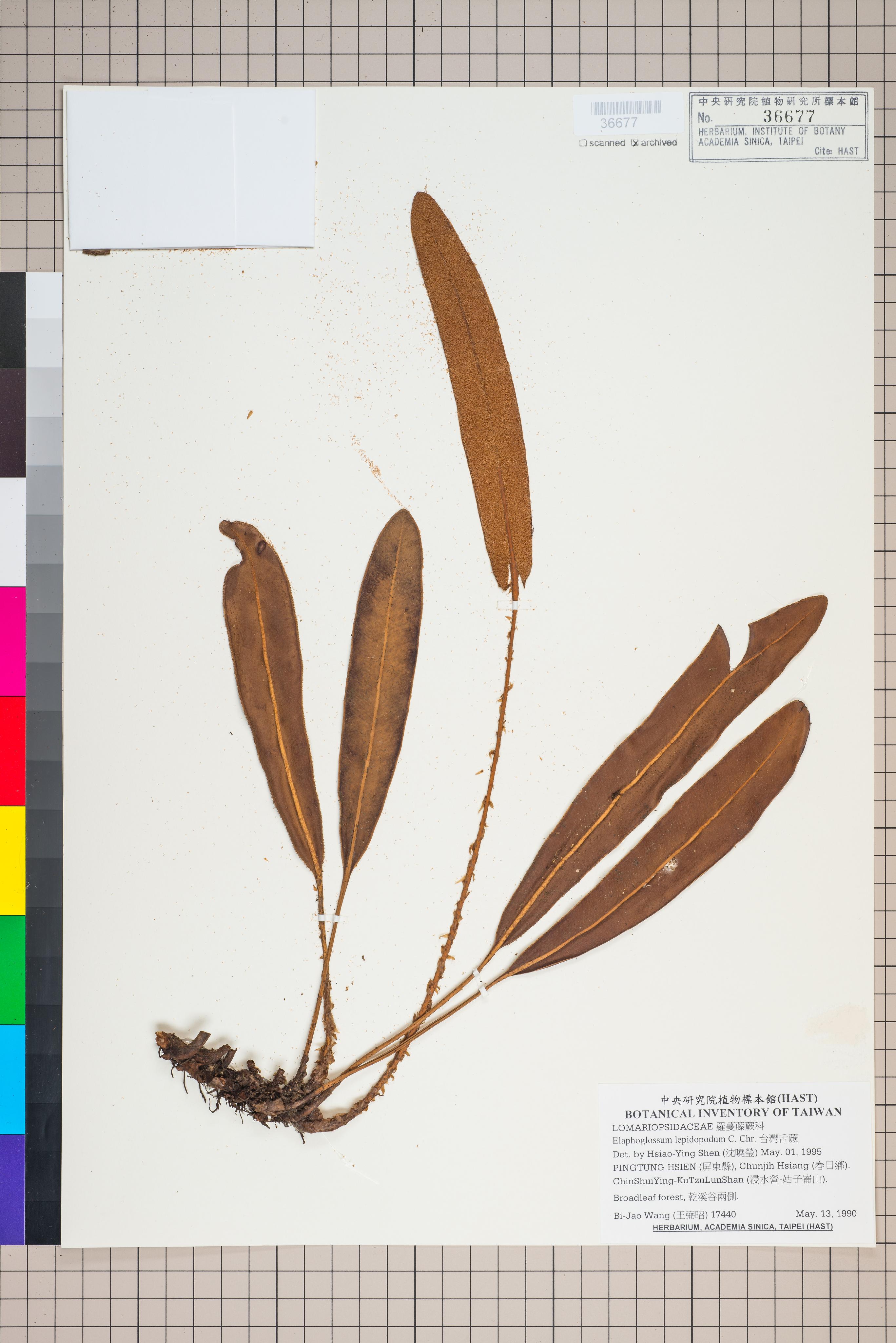 | 1 | Elaphoglossum lepidopodum C. Chr. | 台灣舌蕨 | Shen, Hsiao-Ying (沈曉瑩) | 1995-05-01 |