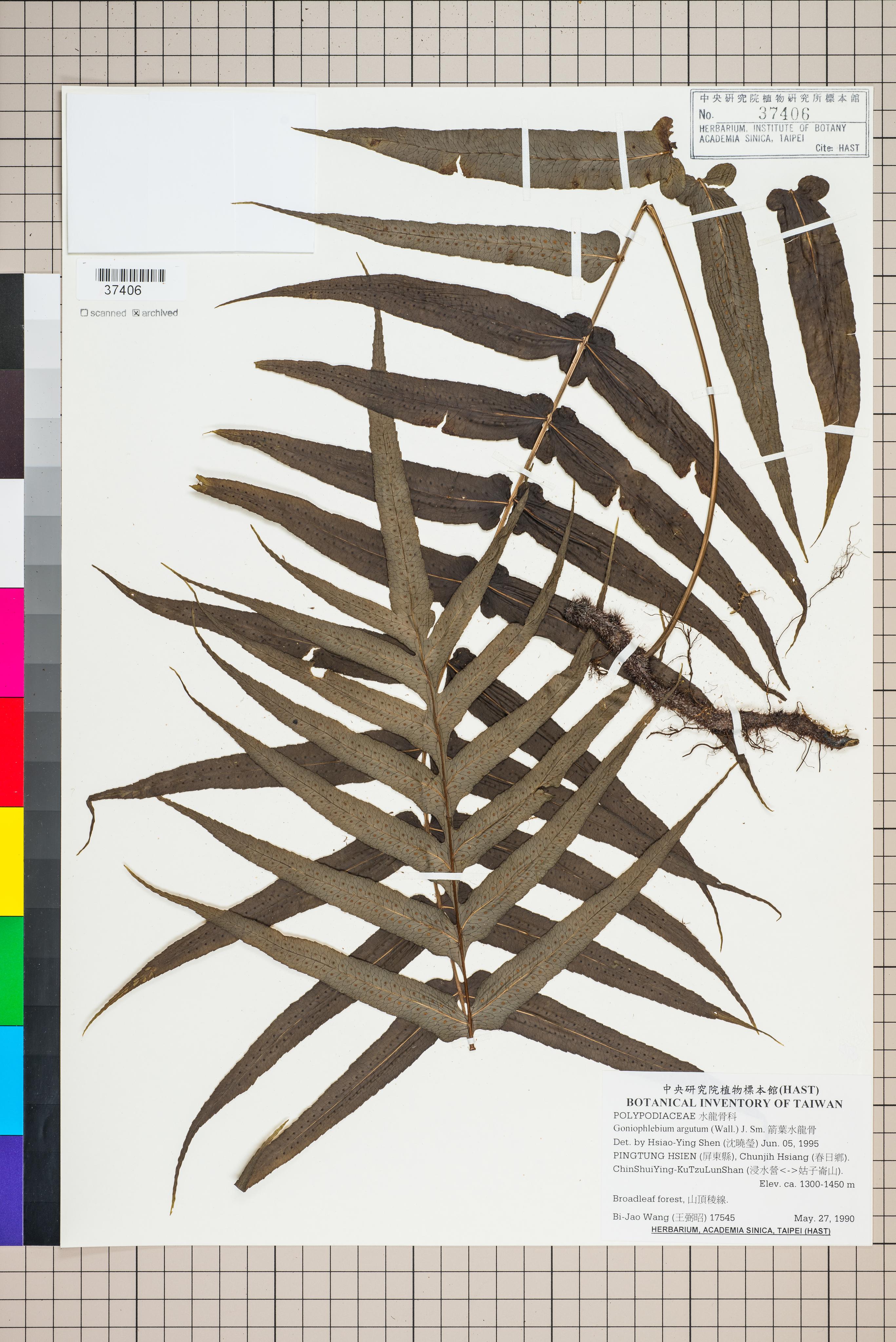 | 1 | Goniophlebium argutum (Wall.) J. Sm. | 箭葉水龍骨 | Shen, Hsiao-Ying (沈曉瑩) | 1995-06-05 |