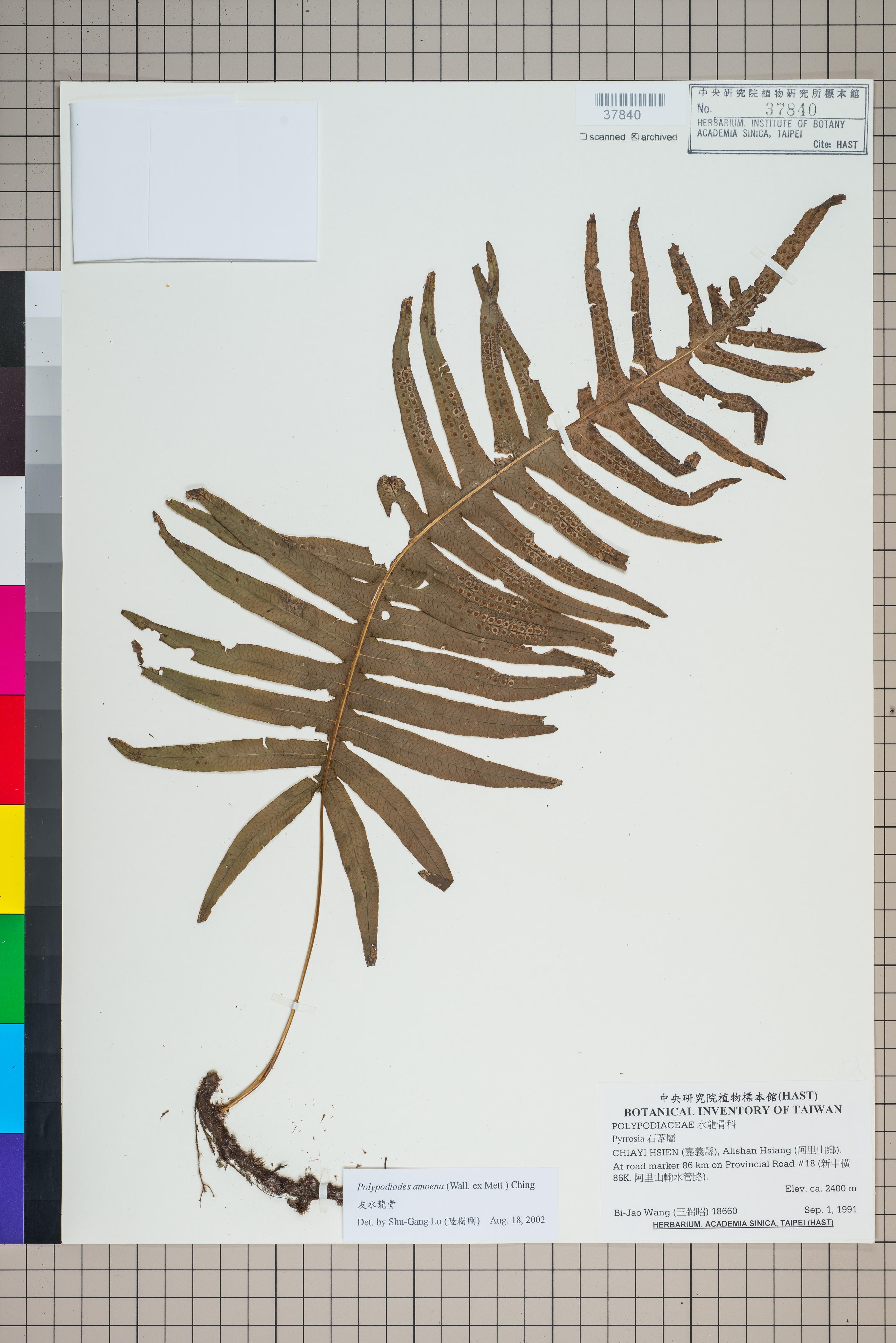 | 1 | Polypodiodes amoena (Wall. ex Mett.) Ching var. amoena | 友水龍骨 | Lu, Shu-Gang (陸樹剛) | 2002-08-18 |