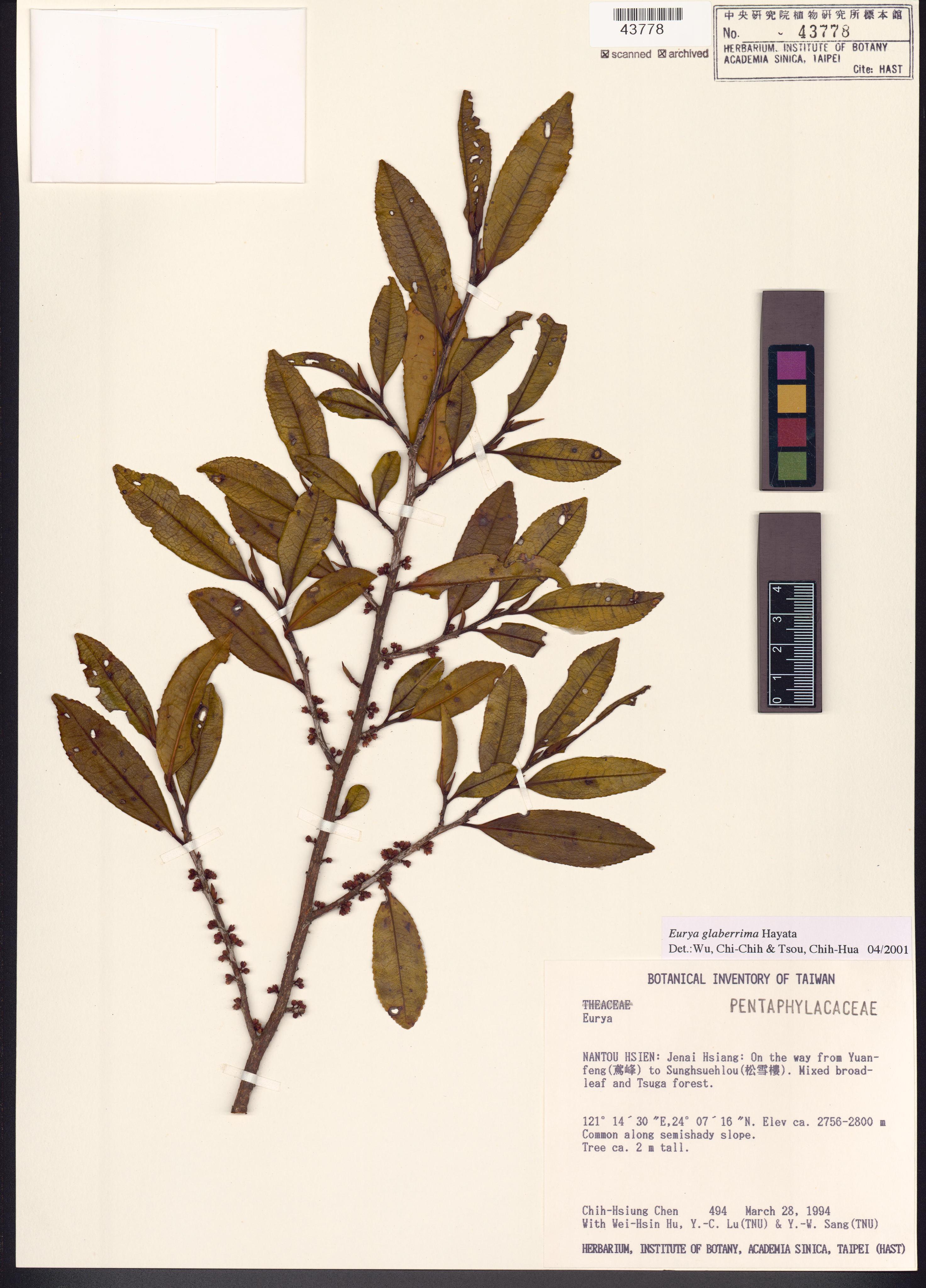 | 1 | Eurya glaberrima Hayata | 厚葉柃木 | Wu, Chi-Chih (吳啟智) | 2001-04-01 |