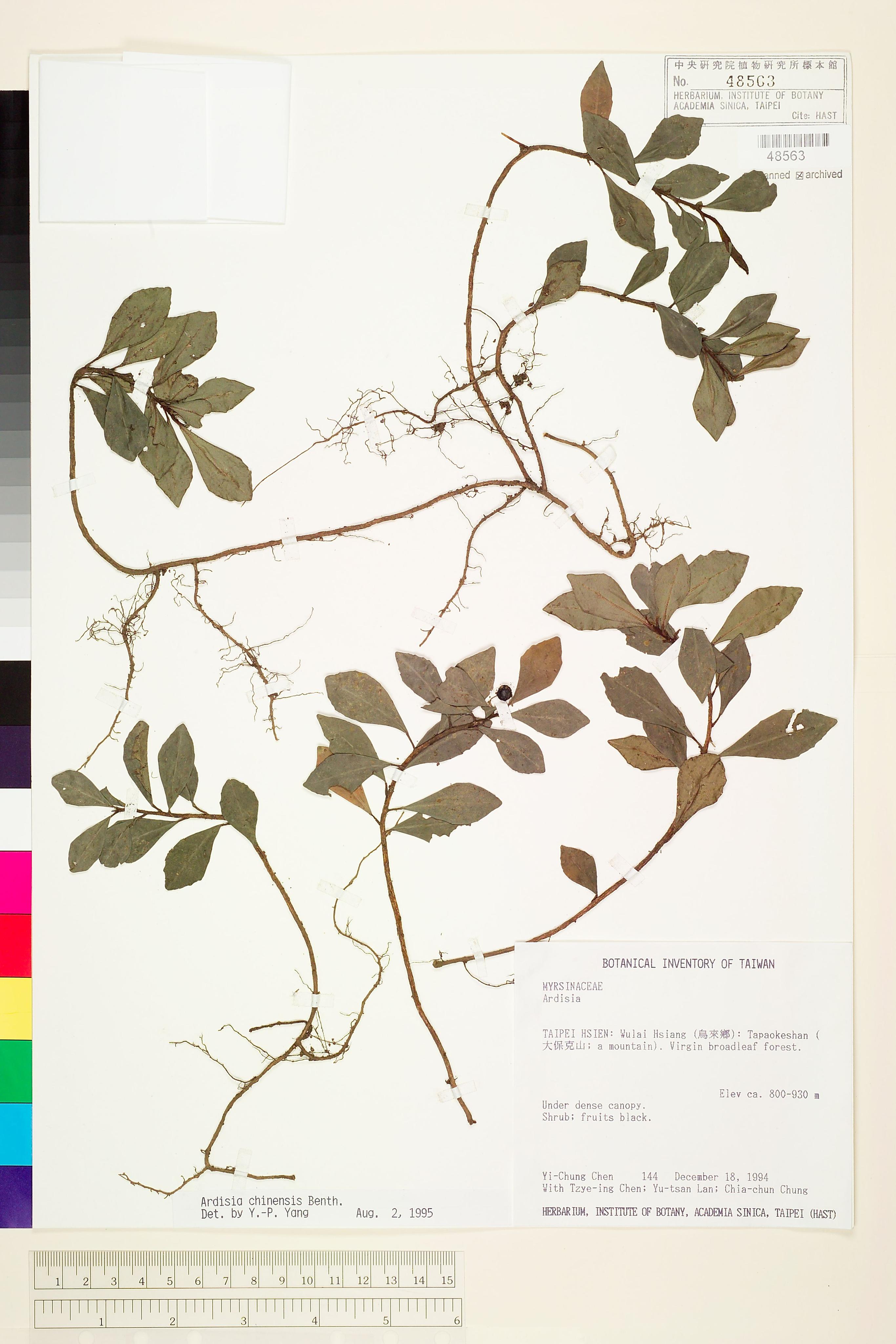 | 1 | Ardisia chinensis Benth. | 華紫金牛 | Yang, Yuen-Po (楊遠波) | 1995-08-02 |