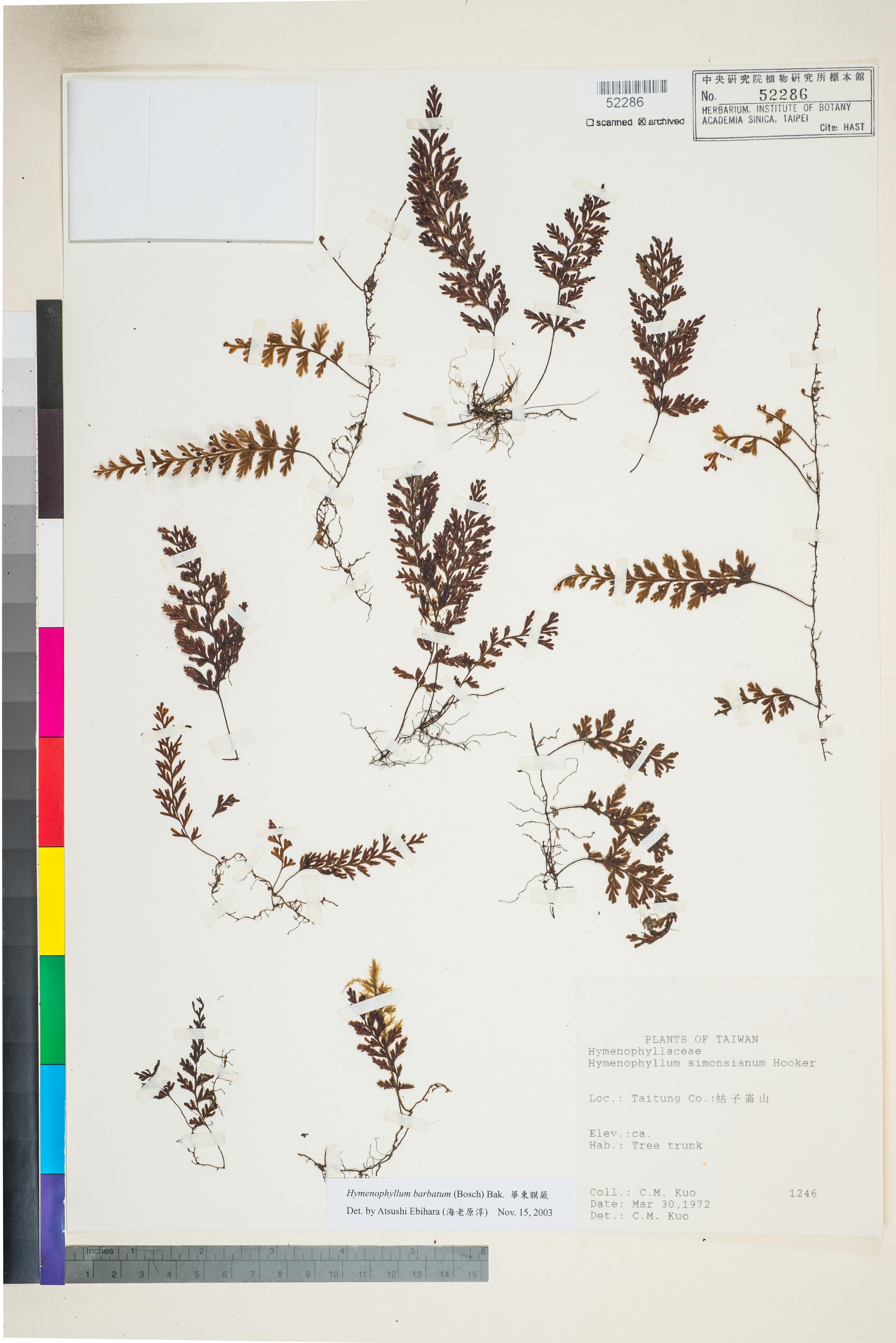 | 1 | Hymenophyllum barbatum (Bosch) Baker | 華東膜蕨 | Ebihara, Atsushi (海老原淳) | 2003-11-15 |