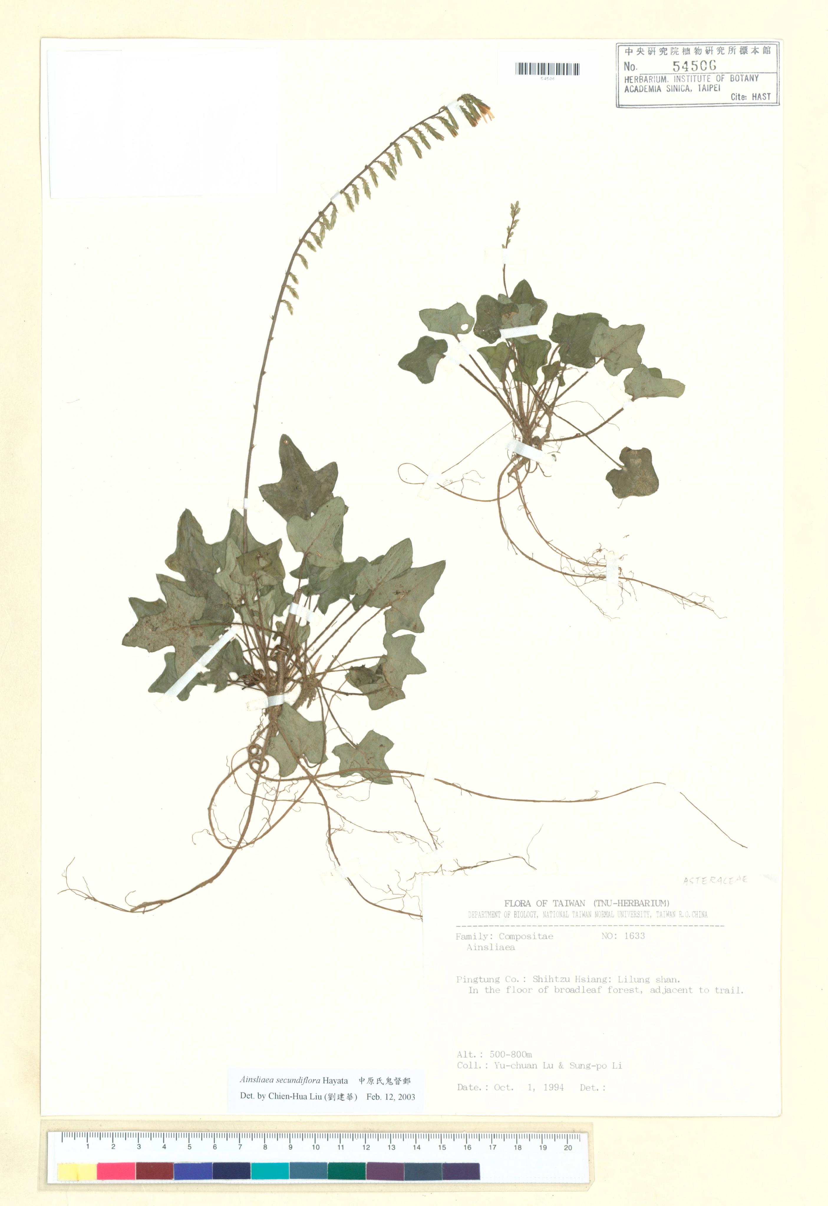 | 1 | Ainsliaea secundiflora Hayata | 中原氏鬼督郵 | Liu, Chien-Hua (劉建華) | 2003-02-12 |