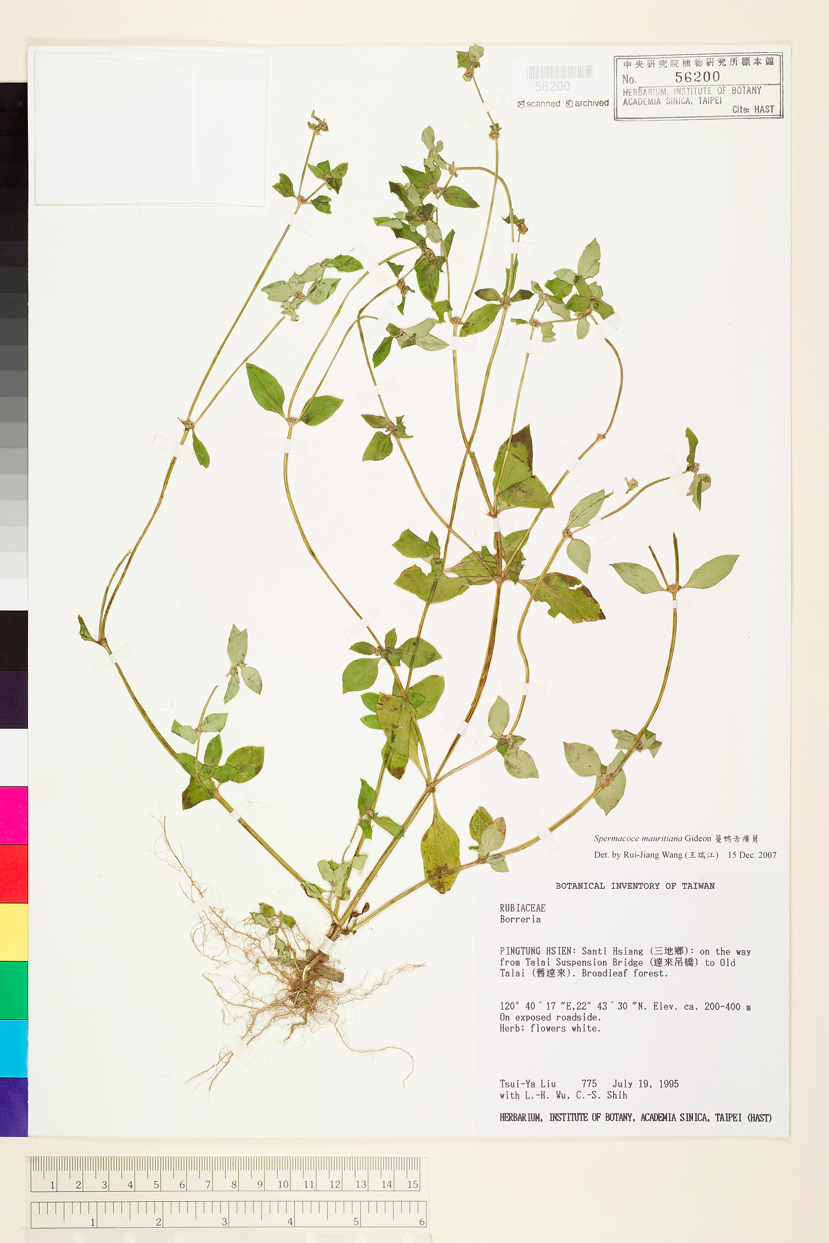 | 1 | Spermacoce mauritiana Gideon | 蔓鴨舌廣舅 | Wang, Rui-Jiang (王瑞江) | 2007-12-15 |