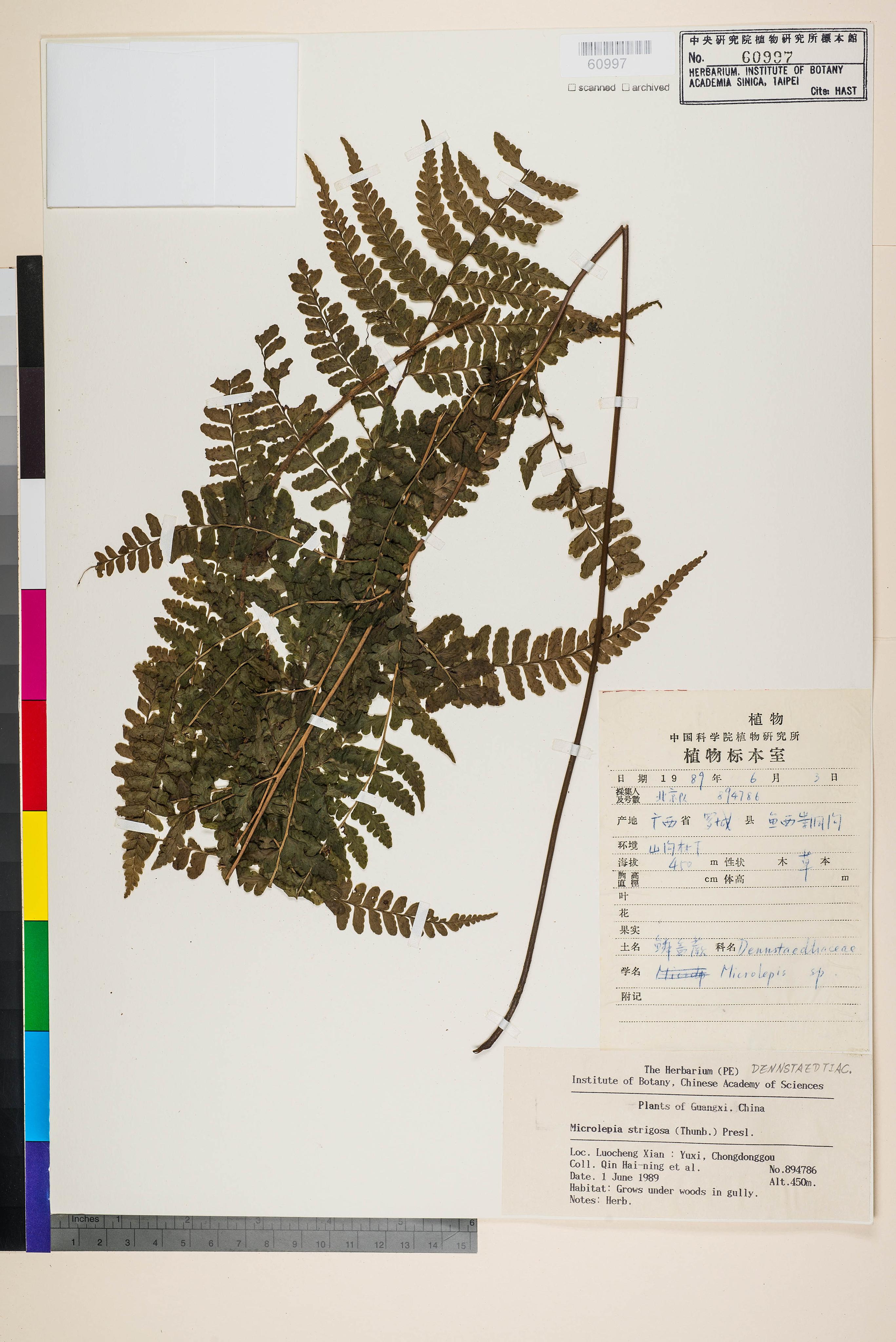 Microlepia strigosa (Thunb.) C. Presl (粗毛鱗蓋蕨)