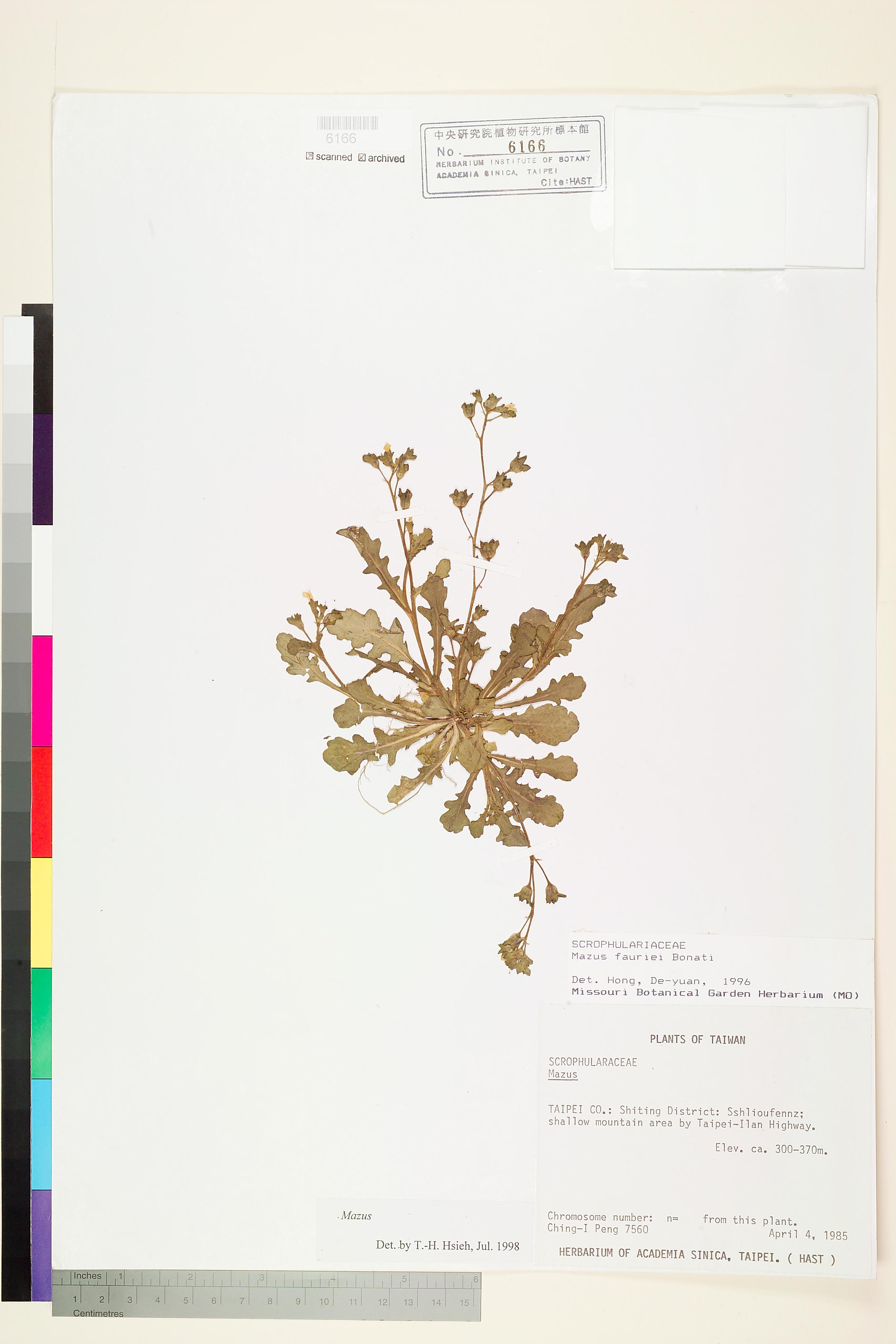 | 1 | Mazus fauriei Bonati | 佛氏通泉草(台灣通泉草) | Hong, De-yuan (洪德元) | 1996-01-10 |