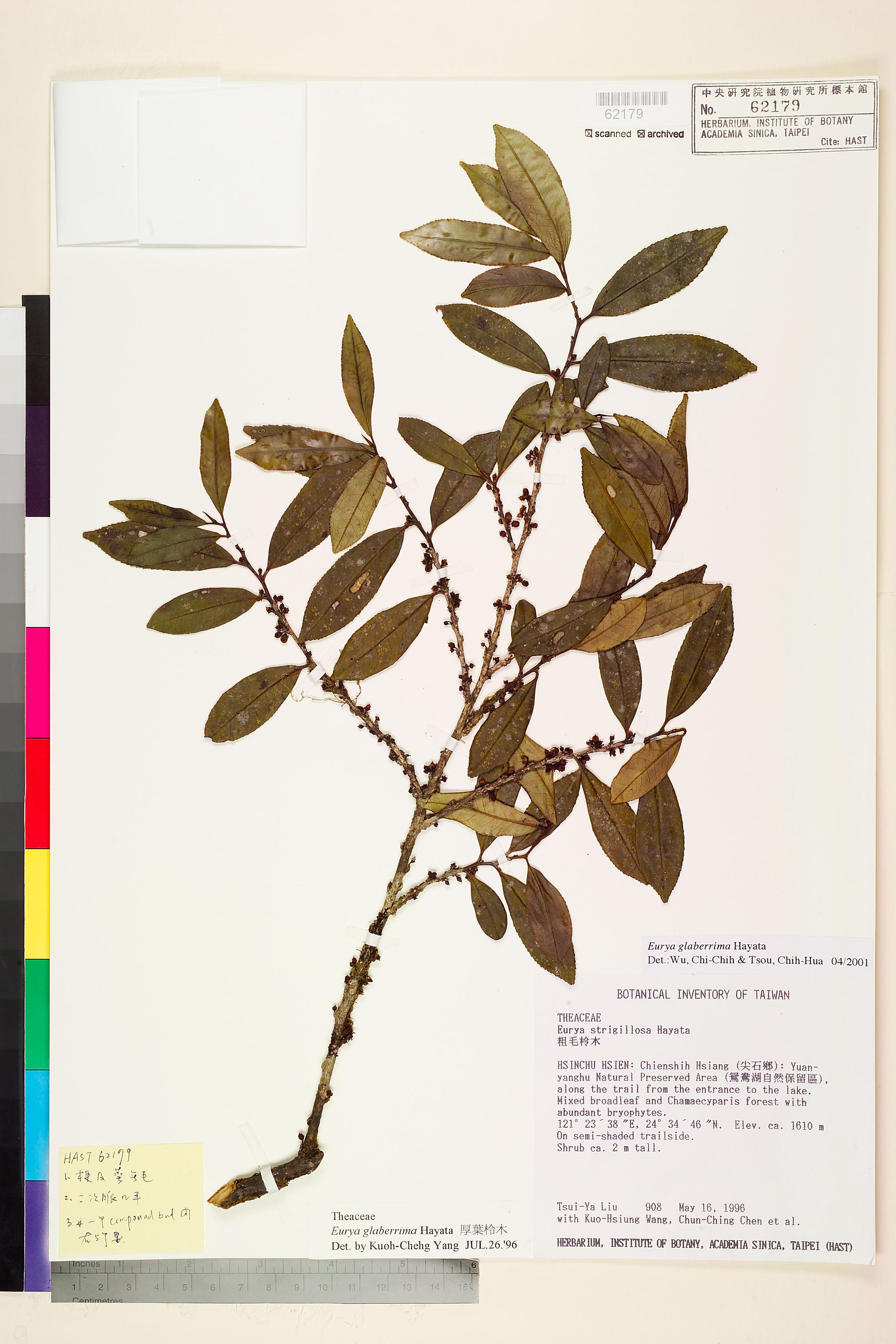 | 1 | Eurya glaberrima Hayata | 厚葉柃木 | Yang, Kuoh-Cheng (楊國禎) | 1996-07-26 |