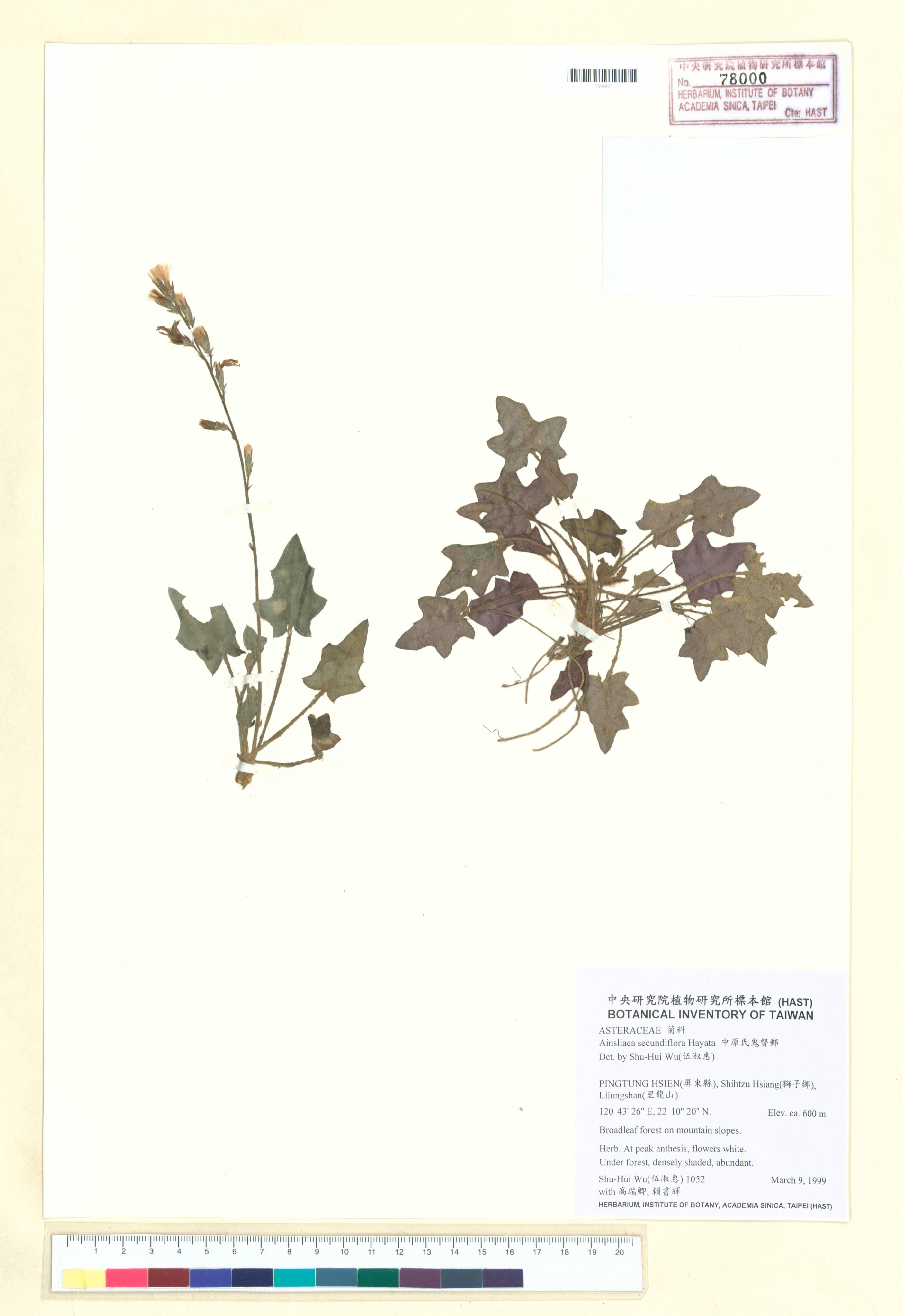 | 1 | Ainsliaea secundiflora Hayata | 中原氏鬼督郵 | Wu, Shu-Hui (伍淑惠) | 1999-06-30 |