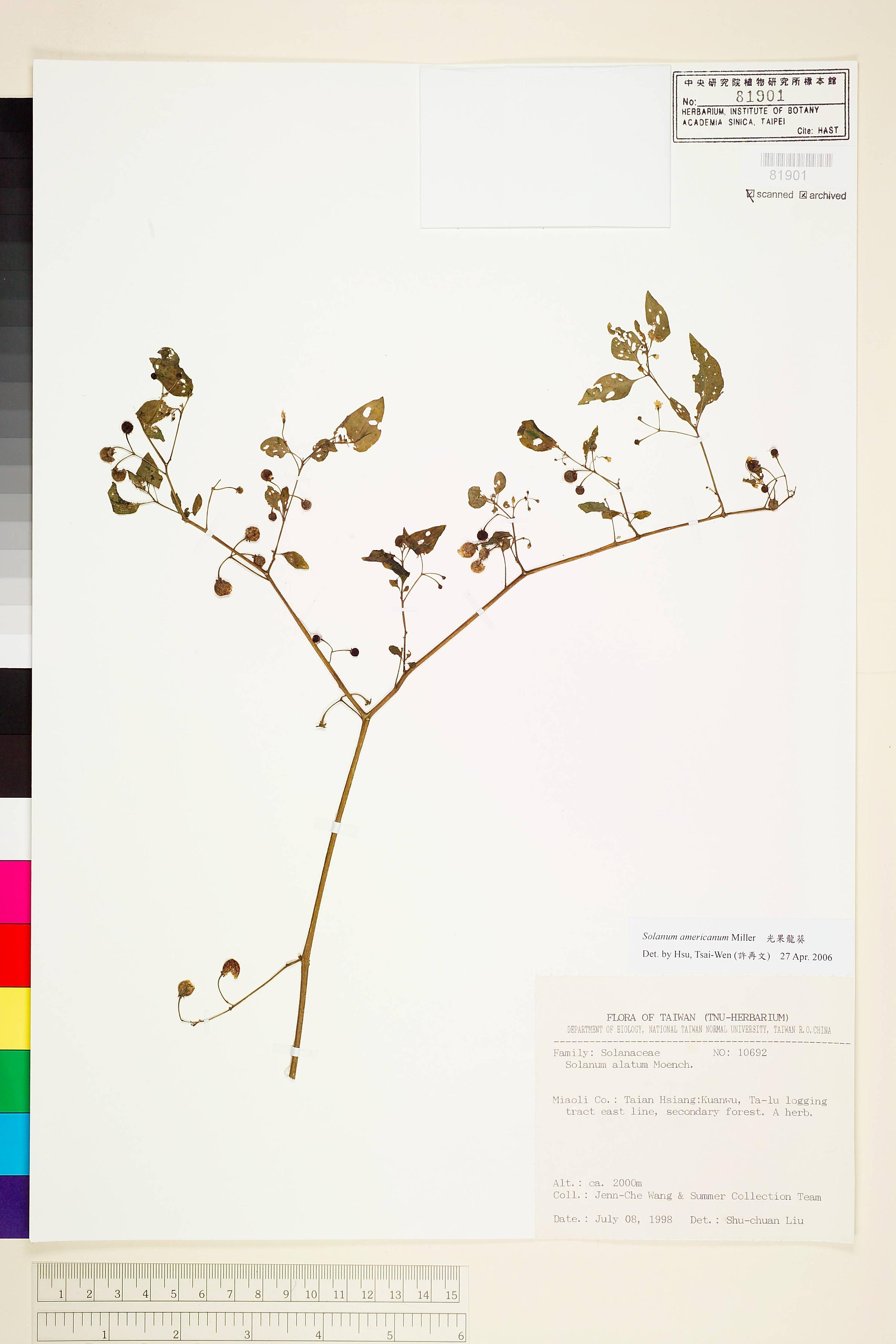 | 1 | Solanum americanum Miller | 光果龍葵 | Hsu, Tsai-Wen (許再文) | 2006-04-27 |