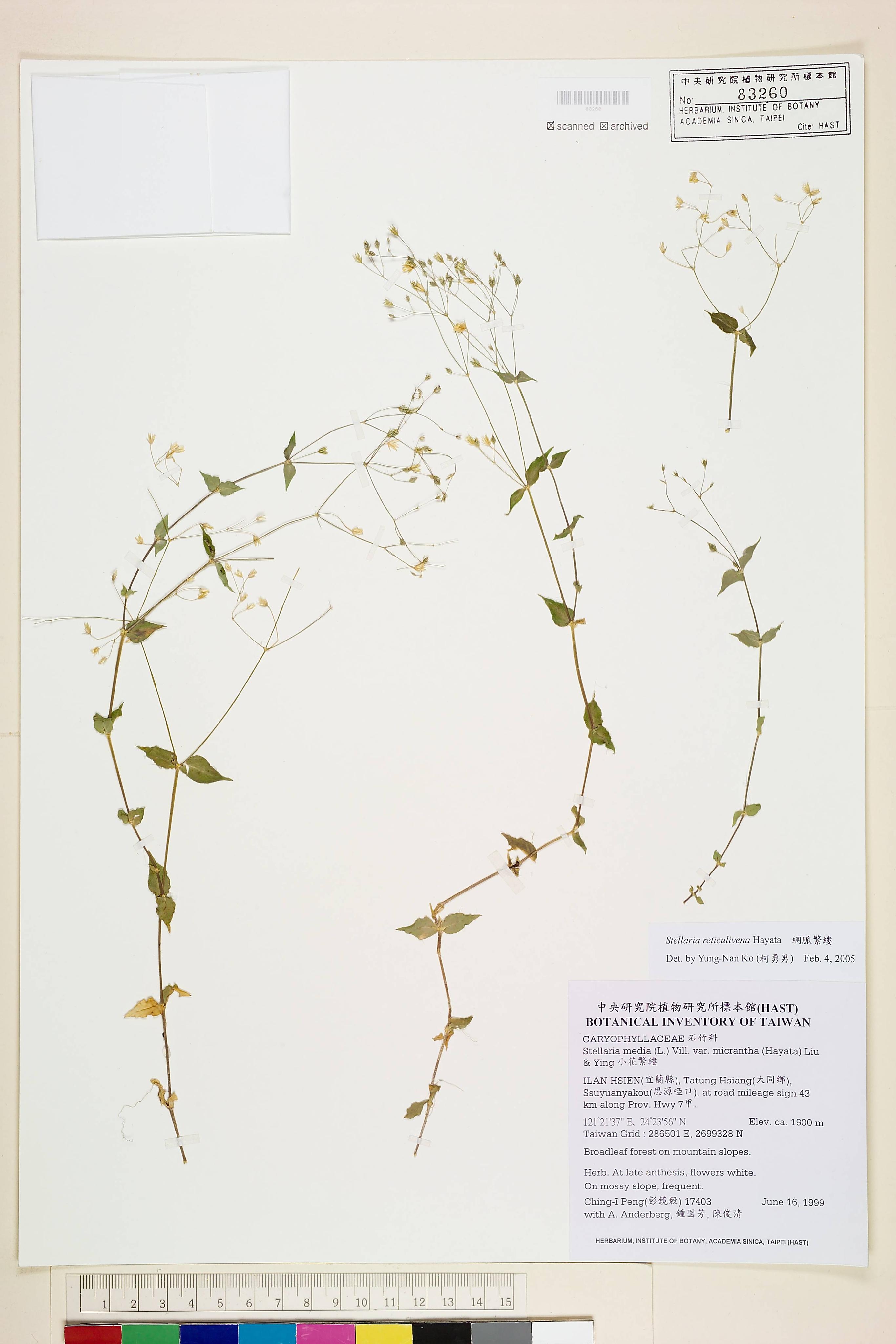 | 1 | Stellaria reticulivena Hayata | 網脈繁縷 | Ko, Yung-Nan (柯勇男) | 2005-02-04 |