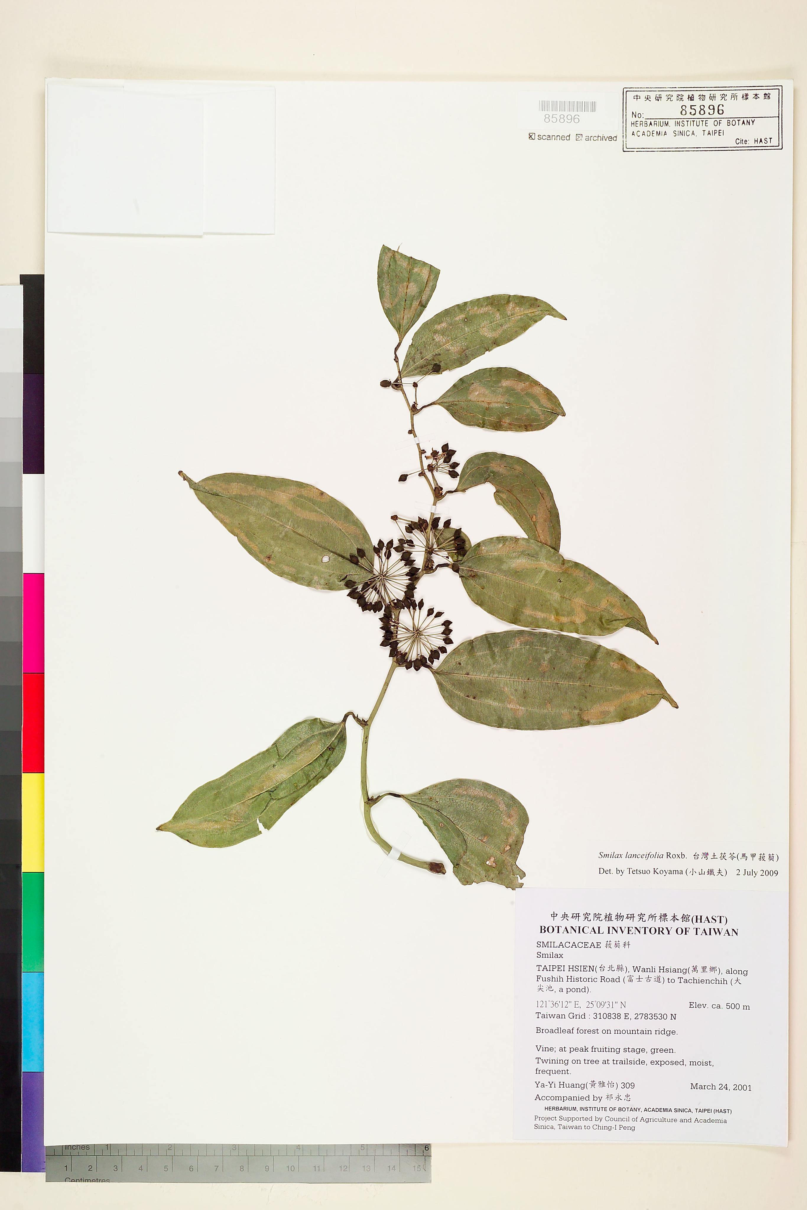| 1 | Smilax lanceifolia Roxb. | 台灣土茯苓(馬甲菝葜) | Koyama, Tetsuo (小山鐵夫) | 2009-07-02 |