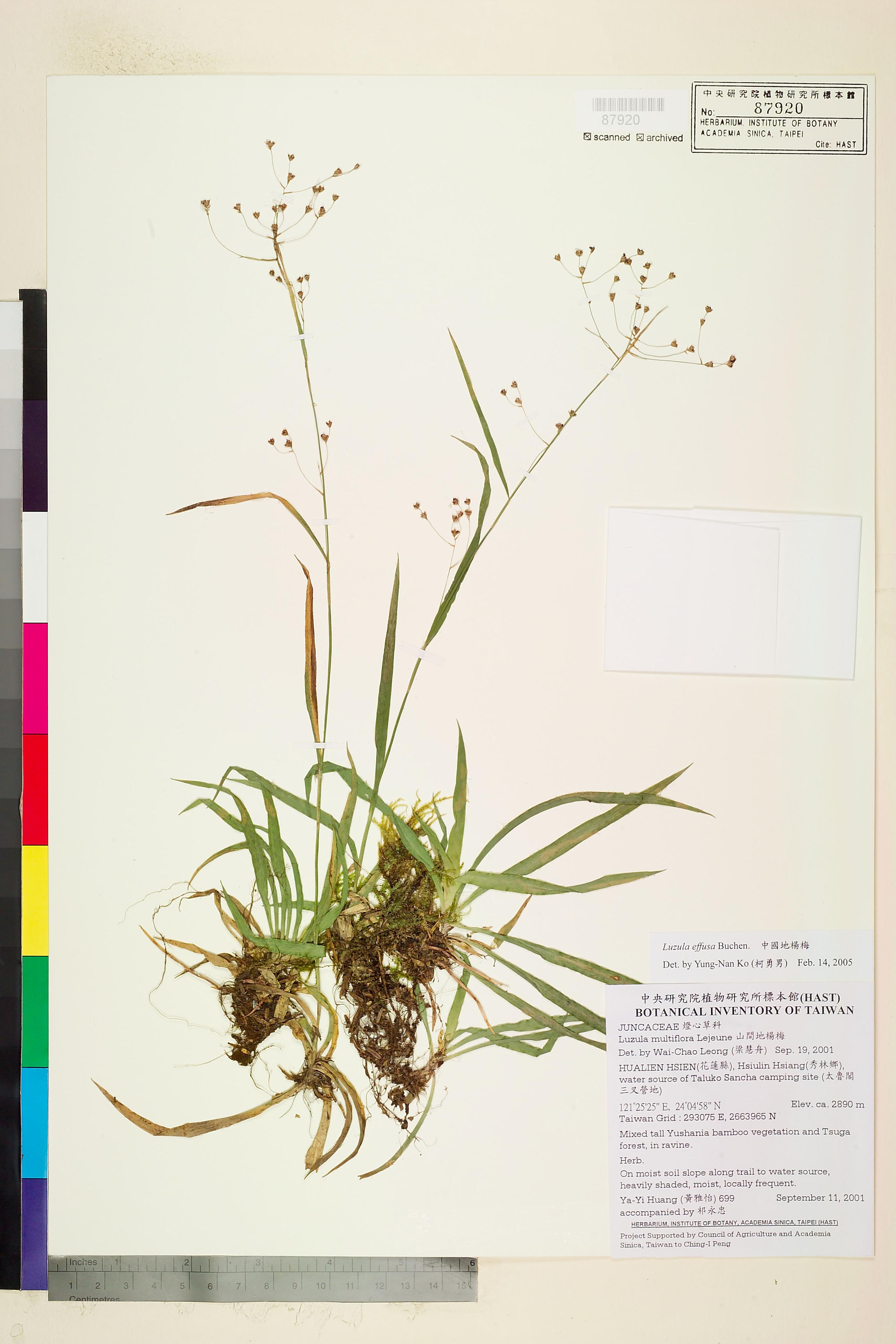 | 2 | Luzula effusa Buchen. | 中國地楊梅 | Ko, Yung-Nan (柯勇男) | 2005-02-14 |