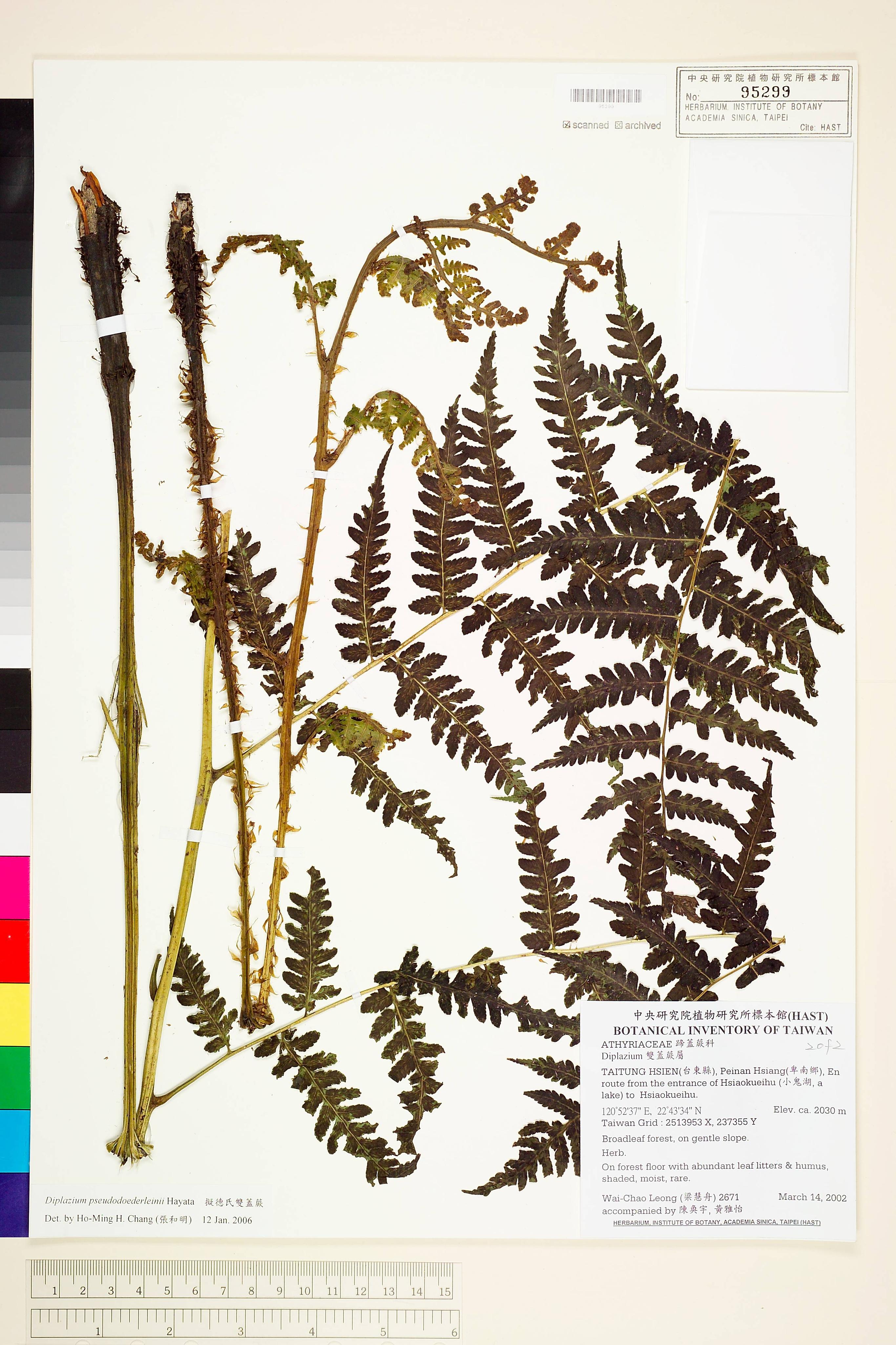 | 1 | Diplazium pseudo-doederleinii Hayata | 擬德氏雙蓋蕨 | Chang, Ho-Ming H. (張和明) | 2006-09-12 |