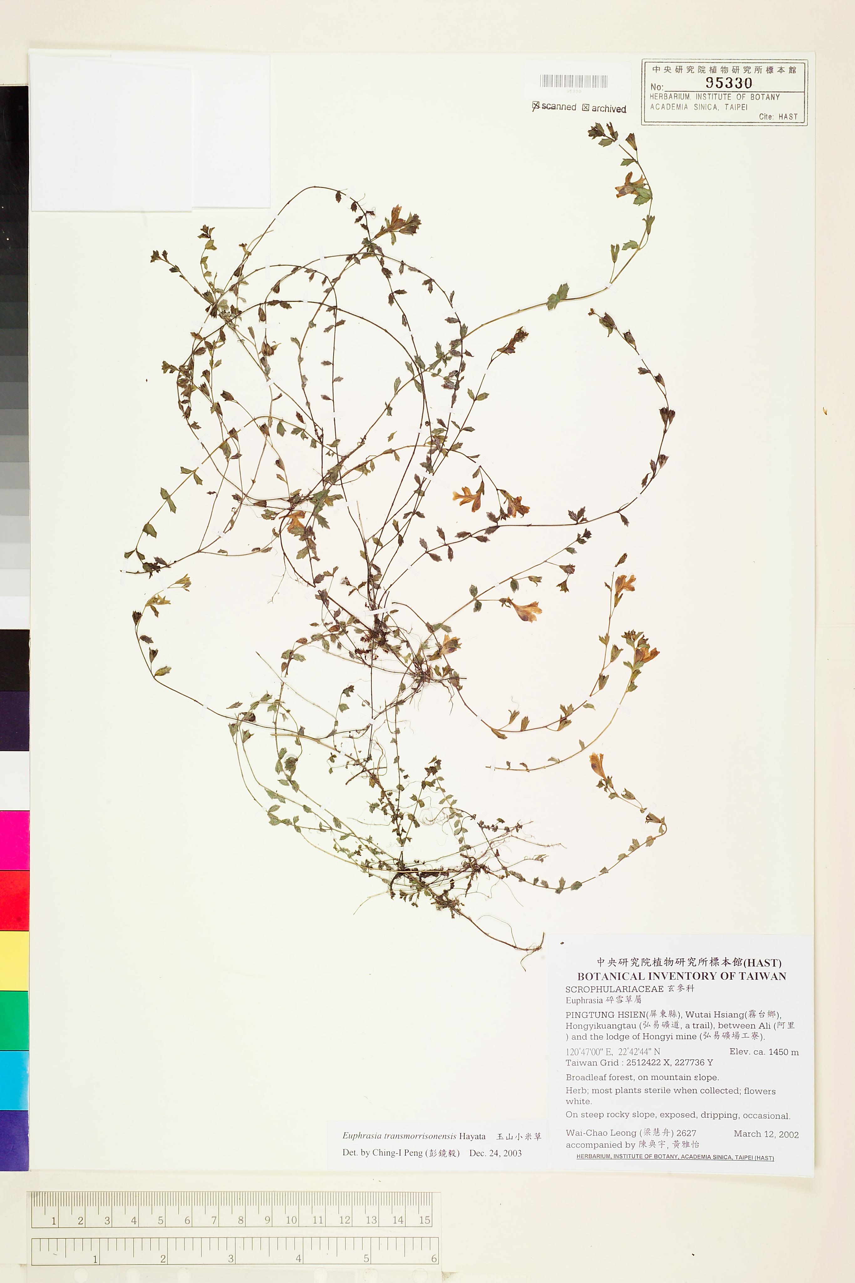 | 1 | Euphrasia transmorrisonensis Hayata | 玉山小米草 | Peng, Ching-I (彭鏡毅) | 2003-12-24 |