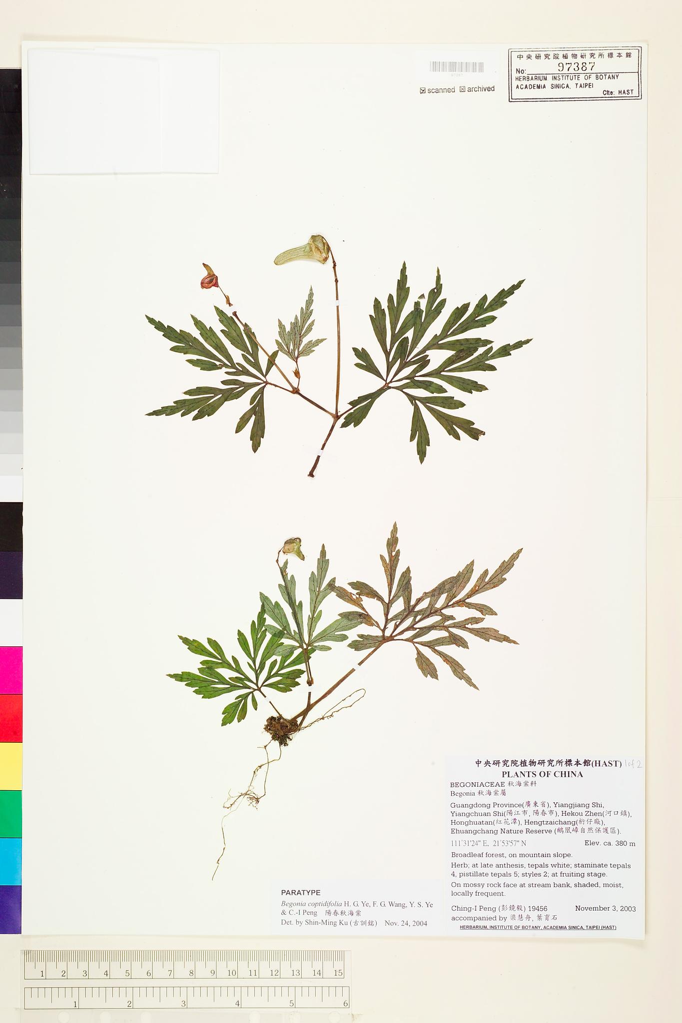 Begonia coptidifolia H. G. Ye, F. G. Wang, Y. S. Ye & C.-I Peng