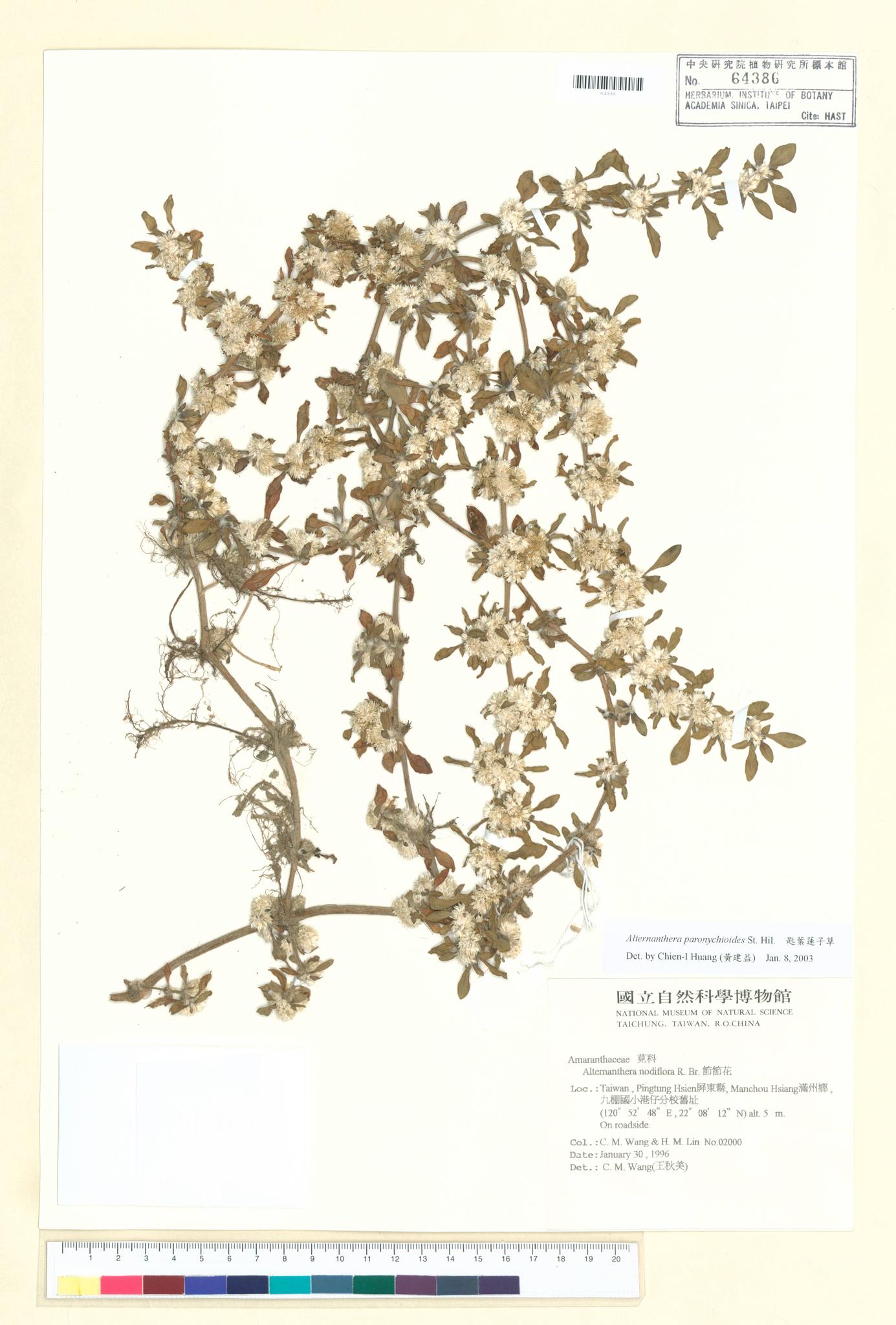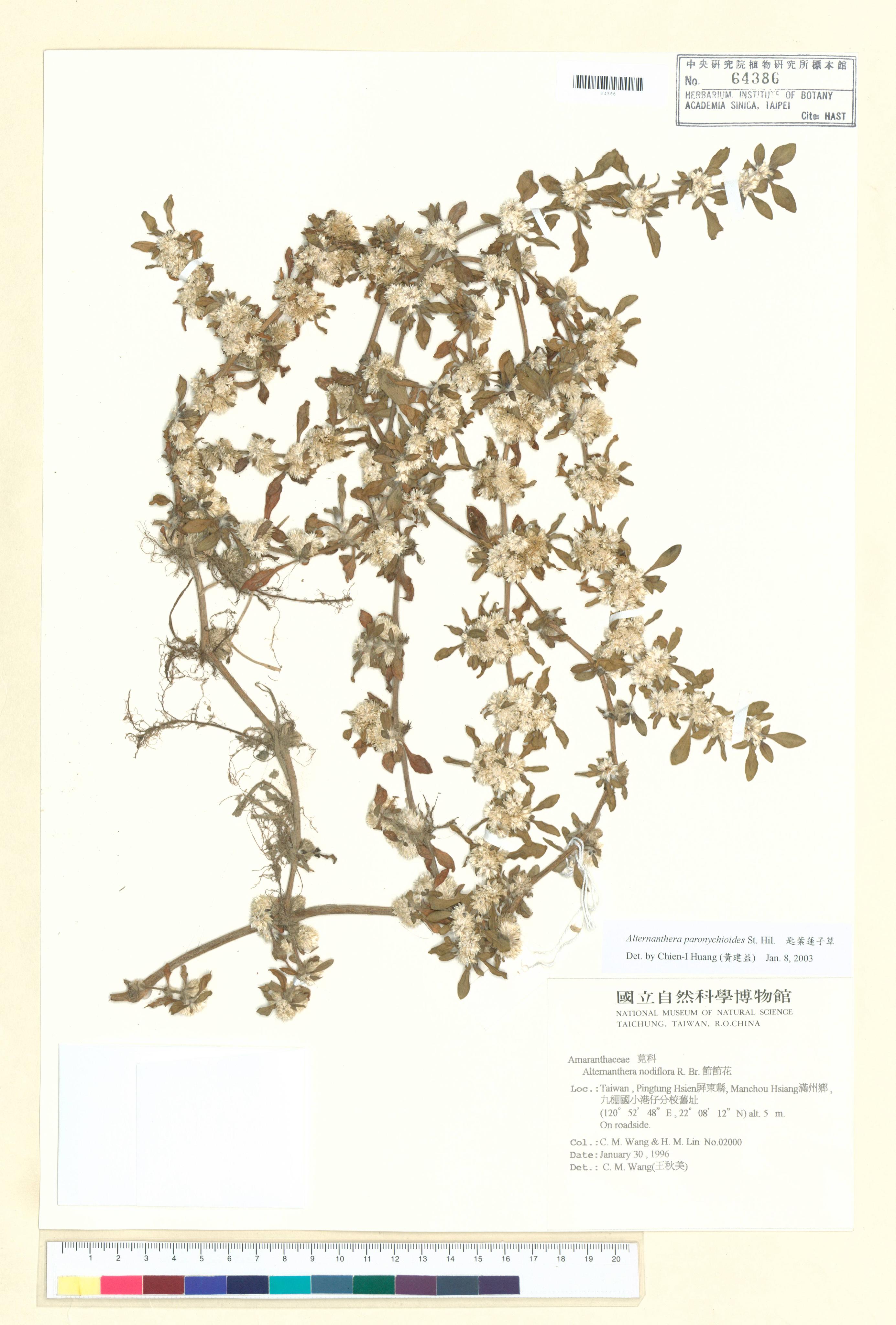 | 1 | Alternanthera paronychioides St. Hil. | 匙葉蓮子草 | Huang, Chien-I (黃建益) | 2003-01-08 |